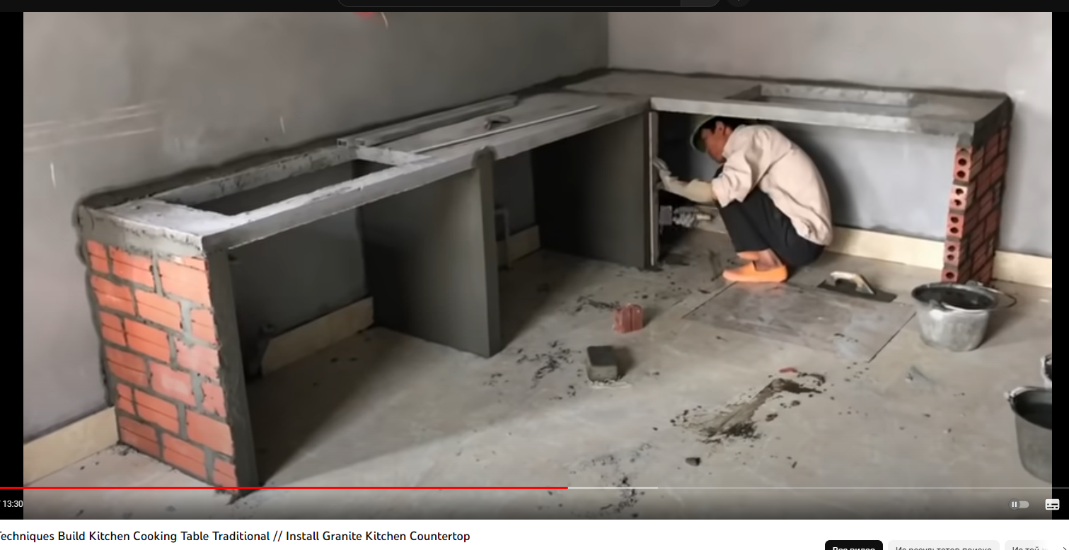 >>281595 Самый быстрый вариант и дешевый - как сделал я. Просто выложил всю кухню из пеноблоков (столешницу, раковину, место под плиту, перегородки) они легко пилятся, легко ровняются. Сверху я их прогрунтовал, покрасил и обшил самым дешевым деревом.