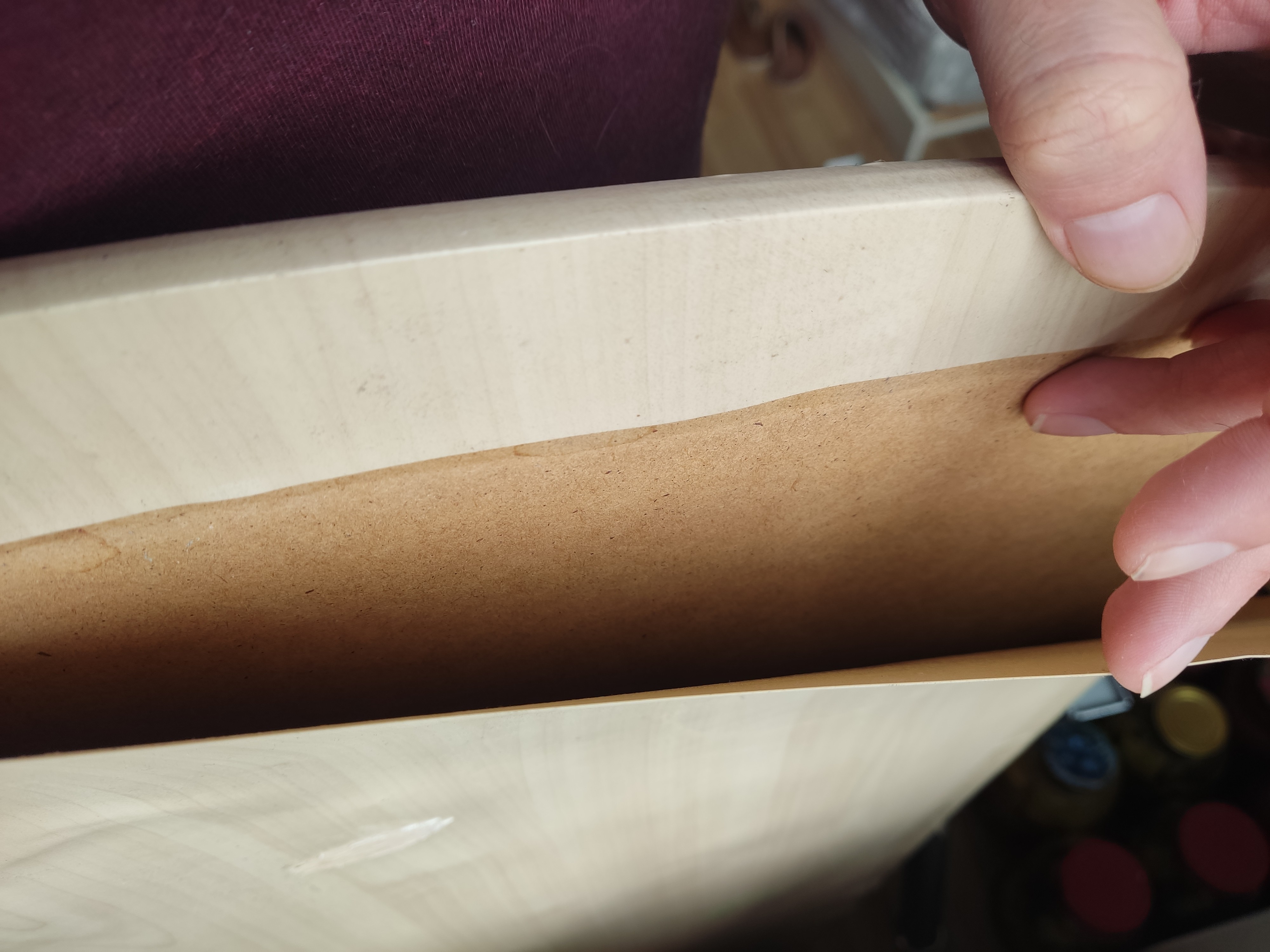Есть две детали из ЛДСП, нужно склеить их торец к торцу. Кромочной ленты там нет, голый срез. Проблема в том, что срез немного кривой, поэтому, если склеивать как есть - будут щели. Как быть?