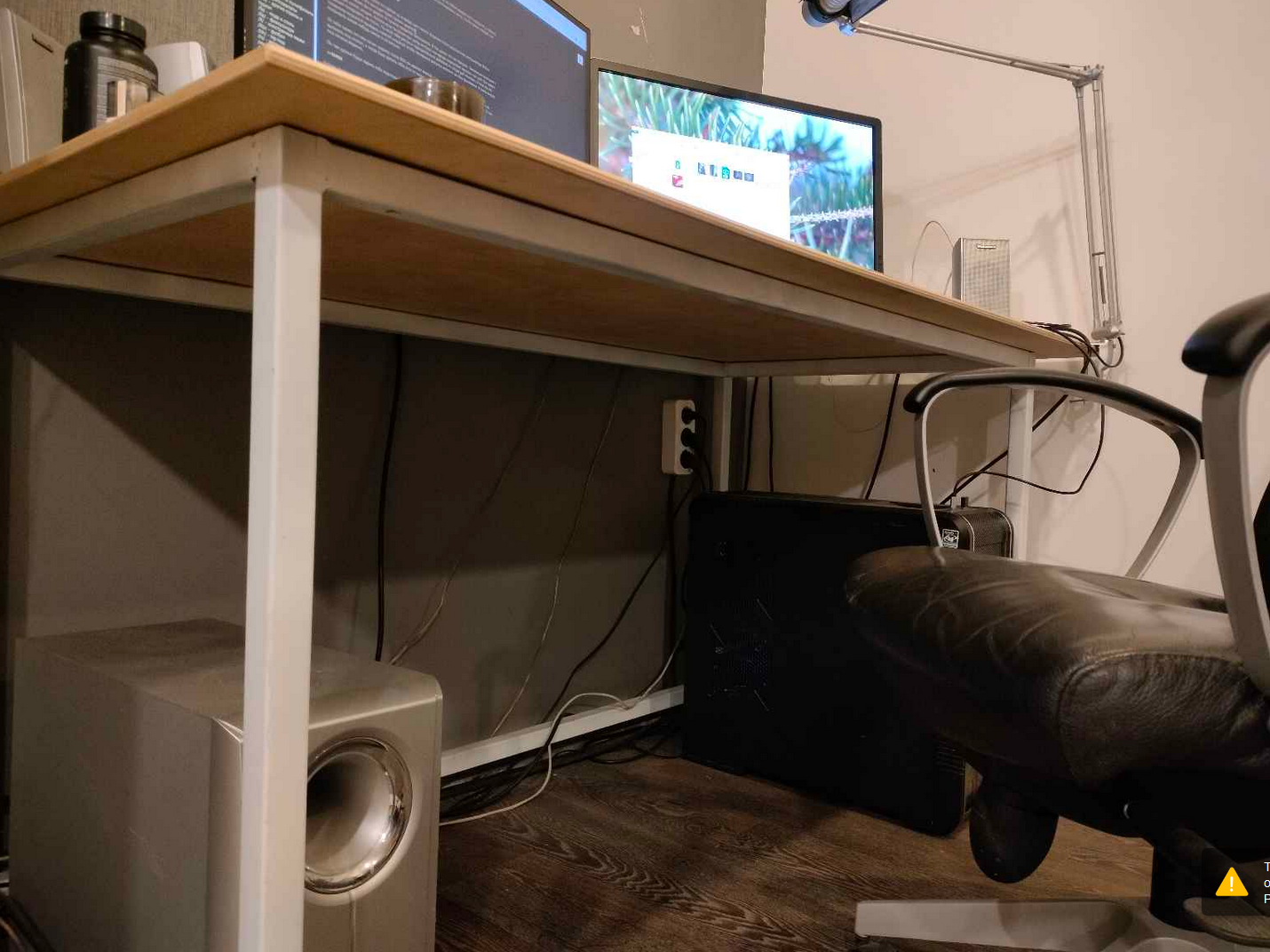 >>334930 >Стол не бывает слишком большим. База. У меня сейчас метр на джва, но у него ещё должна быть неподвижная часть, которая к стене крепится и ещё сантиметров 20 накинуть должна (там весёлая шизоконструкция планировалась). Но меня со всем этим опрокинули, поэтому под основной стол взял что было на Озоне (почти хватает по ширине), а шизу свою пока что собираюсь сам из отдельных ножек колхозить.