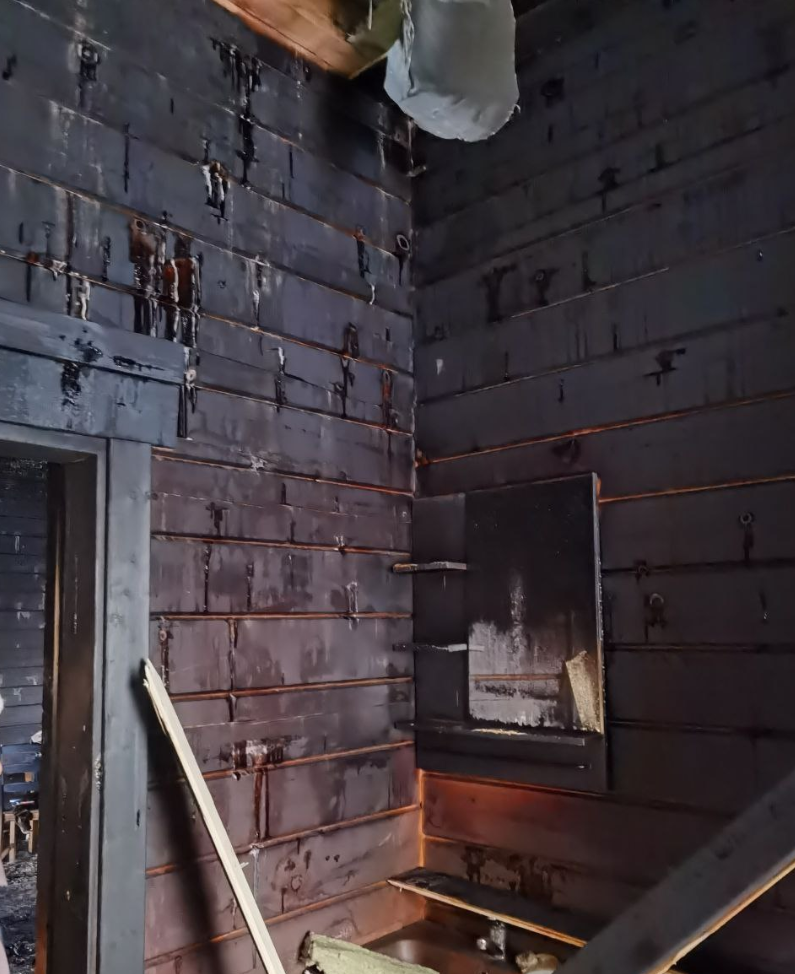 Хорошие новости: кедр не пустил огонь внутрь, обугливание на стенах не превышает 5 мм в глубину. Фундамент (хорошая глубокая лента с плитой, кстати), само собой, не пострадал. Септик (топас с аэратором) и колодец с водой и насосом не пострадали, в работоспособном состоянии и без всяких проблем. Септик я даже уже помыл. Всё остальное в доме, ясное дело, под замену.