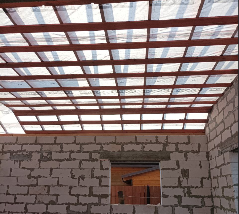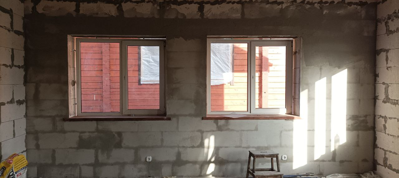 Установил пять подоконников, доложил перегородку до конца. Жена начала штукатурить изнутри, а я готовлюсь всё запенить на выходных, зашить стык крыши и стен, заложив туда утеплитель, разметить место для установки слухового окна и приготовиться к монтажу вентиляции и снегоудержателей на кровлю. И водосточных труб.