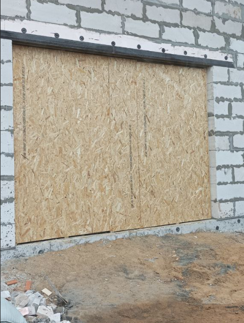 Гаражные ворота успешно заделал. Думаю снаружи зашить нищуковским профнастилом, потому что штукатурка на осб — такое себе, при контакте с влагой держаться особо не будет. Внутри осталось пароизоляцию накинуть и гкл закрыть — и всё.