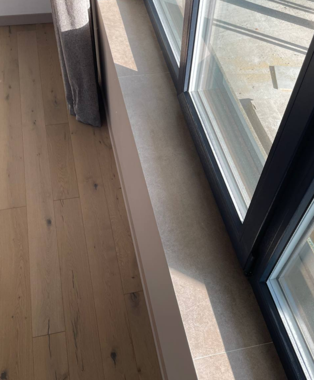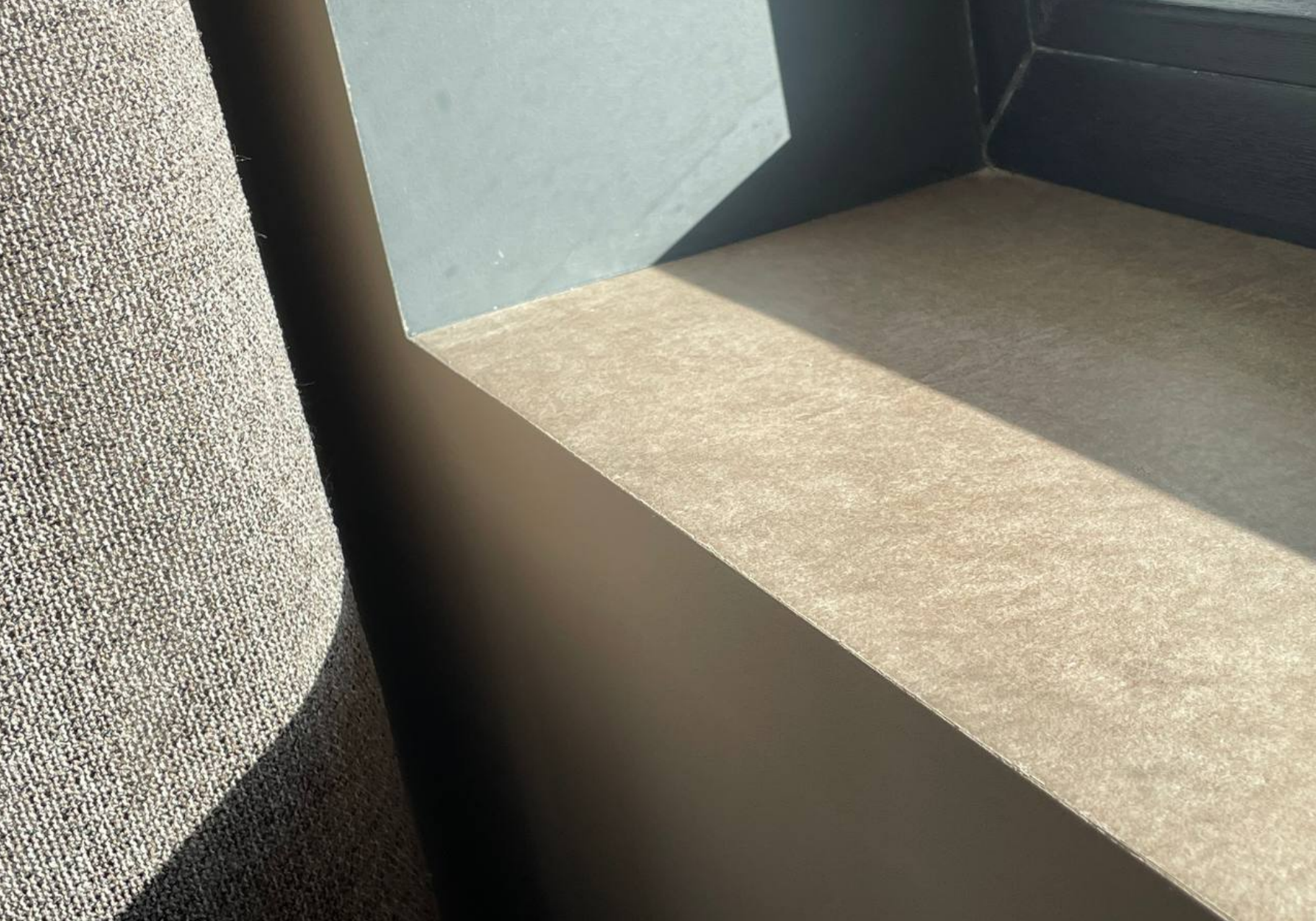 Вот так вышло, короче на кухню шла плитка 120х60 бежевая на пол, делали подрезку, в конечном итоге из пары плиток решили сделать подоконники (они не глубокие) И точно также со стороны улицы сделали, добавив небольшой уклон и использовав уже более темную плитку из СУ