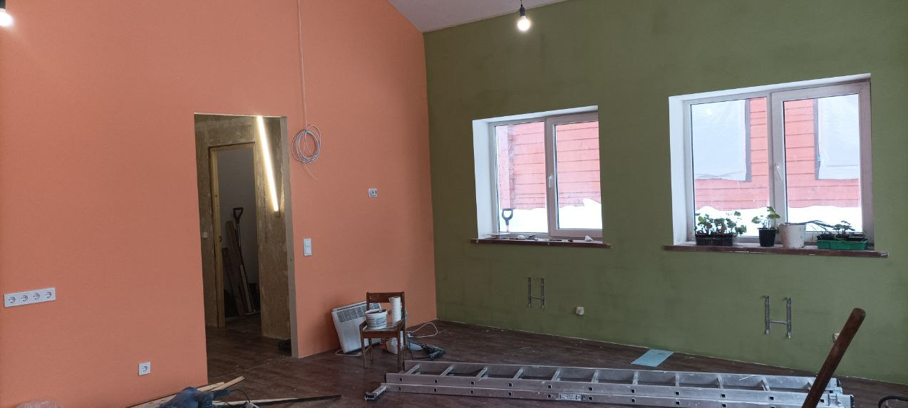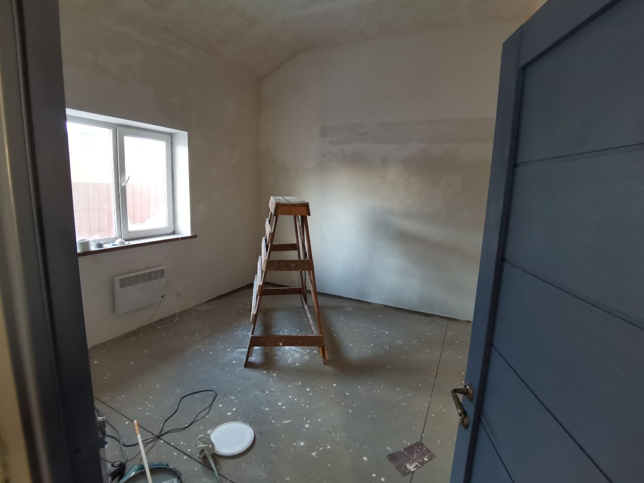 Ну, и начали отделку оставшейся комнаты. Жена всё загрунтовала, отштукатурила и зашпаклевала. Сегодня начинает красить потолок и стены, на выходных планируем класть ламинат. И так-то всё, дополировать оставшиеся мелочи, связанные с водой (например, дособрать душевую кабину, пока только поддон поставил), проверить гидроаккумулятор — и начинаем готовиться к переезду.
