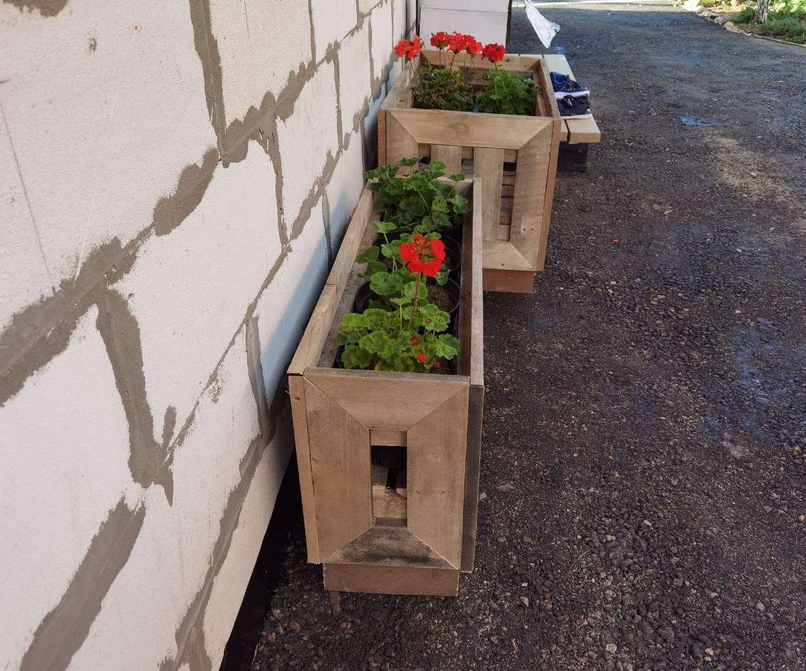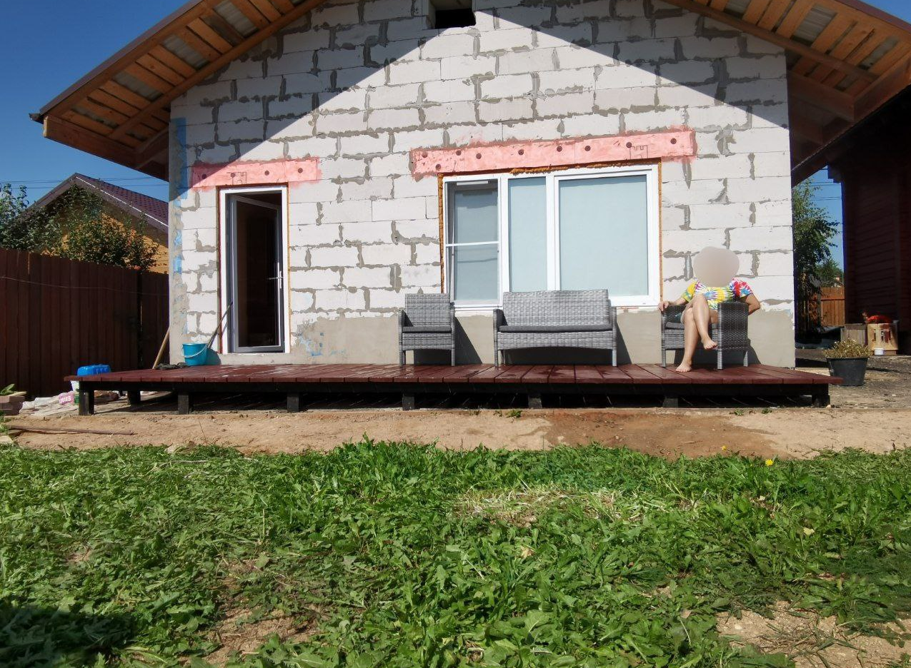Не так давно заделал вот такую террасу. Натыкал свай (деревянный брус, покрытый битумным лаком), собрал каркас, застелил доской. На всякие РРРРРРРЯ НО ВЕДЬ НЕ ВЕЧНО — лет десять простоит, дальше я не загадываю, всё срезать и крутануть несколько винтовых свай недолго, а эта терраса обошлась практически бесплатно, только настил пришлось купить. Ну и там грядки всякие делаю из остатков дерева от стройки, цветники вон из поддонов, по лофту. Заштукатурить только не успели, хотя жена хотела. Ну, может, и заделаем ещё, осень тёплая.