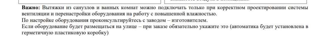 Важно: Вытяжки из санузлов и ванных комнат можно подключать только при корректном проектировании системы вентиляции и перенастройки оборудования на работу с повышенной влажностью.
