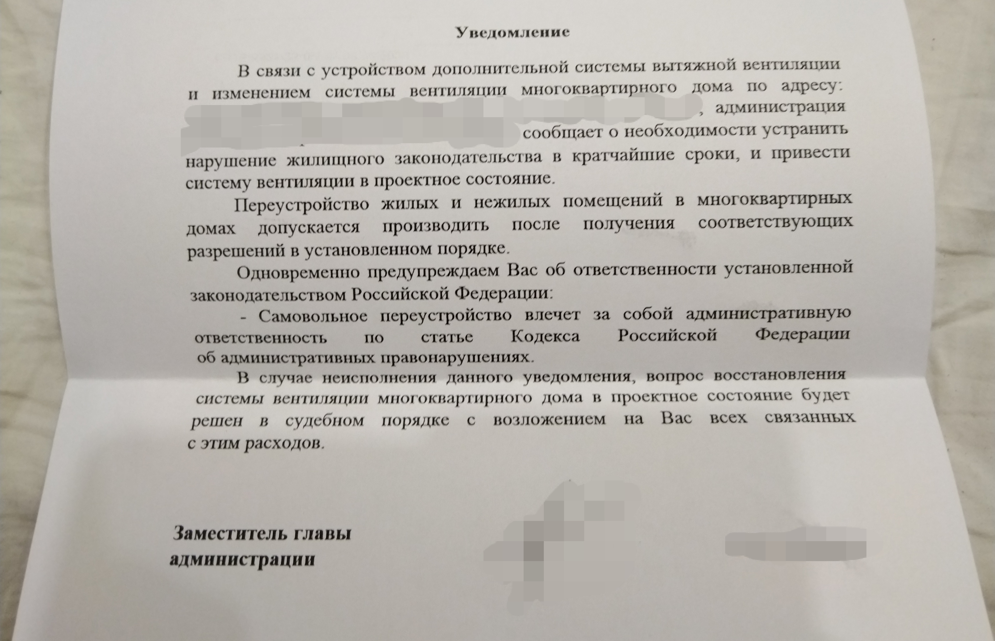 >>369380 При чём тут предположения вообще? Я вызывал мастеров из УК, пришли специалисты с приборами и перископами, всё померяли, канал осмотрели, увидели что он заблокирован, прошли по квартирам выше, в результате выяснили, что на 8м этаже канал заблокирован(я на 5м), на 9м свободен. Пидоры с 8го этажа к себе мастеров не пустили конечно, теперь трясу УК чтобы пришли к ним с ордером. У меня отдельный пиздец в том, что УК не имеет своих специалистов и работы по вентиляции отдаёт на аутсорс третей конторе. А контора не имеет полномочий УК и не может получить доступ. Пишешь заявку в УК - УК пересылает её в контору и закрывает. Контора посылает мастеров, те возвращаются ни с чем, так как нет доступа, и говорят "обращайтесь в УК" - и так по кругу. Короч, ебусь пока с этим, но так и подмывает под дверь пидорам с восьмого этажа насрать.