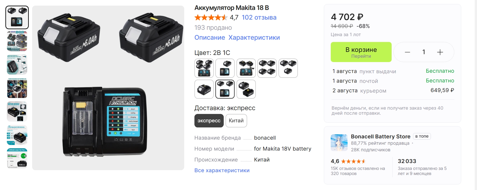 >>328144 >>328145 У меня 4700р за зарадку+2 аккума, ты дал мне аккум за 4000 и зарядку за 1400, т.е. на 700 р дороже и на аккум меньше. Оно стоит того? Плюс, там отзывов мало у тех продуктов что ты дал мне
