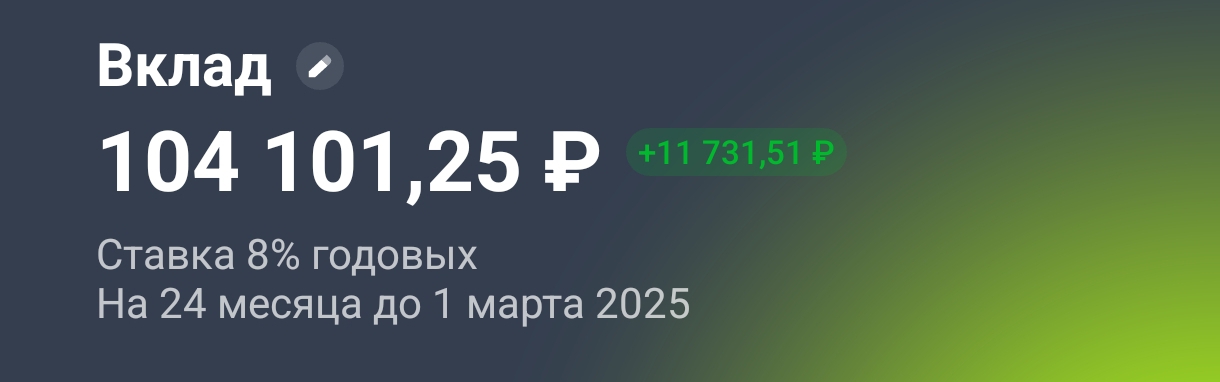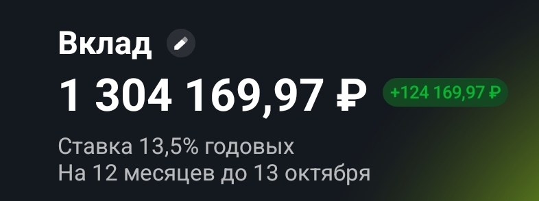 >>329467 Хз, чел. Кинул 5кк у Олега под 18% (19.6% с капитализацией процентов), остальное держу под 10% на накопительном счету. Кручу револьверы вкладов пока есть возможность пополнять в течении месяца, затем открываю новый и загоняют туда свободное бабло. Как заканчивается вклад, то деньги перегоняю на новый вклад