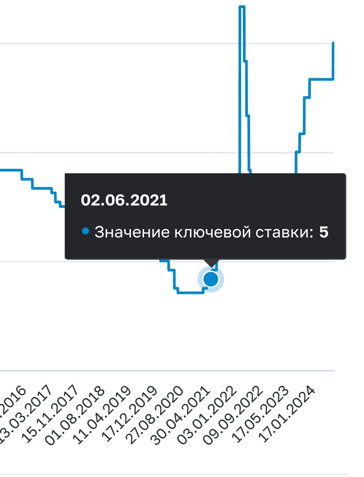Но мне тогда повезло, я подождал снижения ключа до 4.25%, сделал преодобр под 6.9% и пошел искать хату. За 3 месяца не нашел, сделал ещё один предодобр уже под 7.4%, там уже ключ начал подниматься, явно давая мне поднять что скорей покупай недвигу, нахуй, не медли.