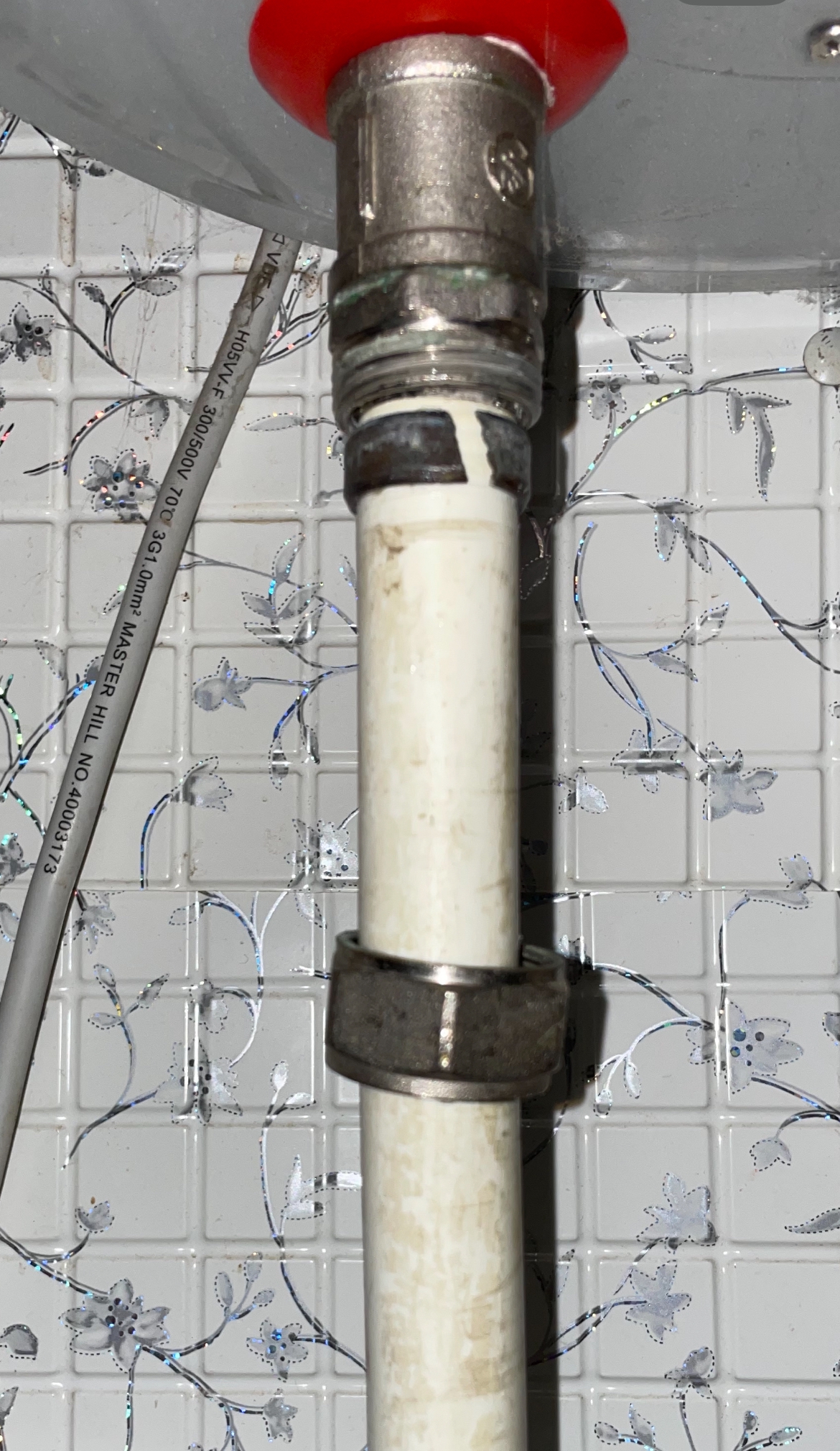 Кстати, еще заметил, что вот эта синяя труба с холодной водой(в доме только холодная вода, нагревается котлом, который в отдельном помещении на кухне), покрывается конденсатом если жарко(после приема ванны такое). Это же норма зимой?