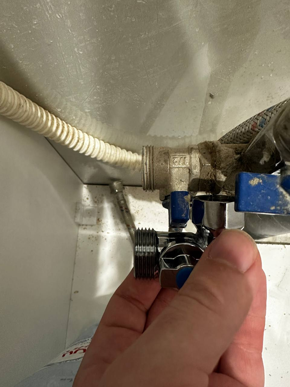 Аноны, что можно с этим делать? Может кто знает, почему со временем из-под резьбового соединения на уголке полотенцесушителя лезет какая-то белая поебень (см фото)? На прошлом полотенцесушителе образовался свищ в теле самого уголка и потекло из корпуса уголка, благо я был дома, сразу заметил и отключил. Вызвал сантехника частного, пришлось купить новый полотенцесушитель, т.к. не смог найти новый уголок в тот момент. Теперь вот спустя пару лет вот такая херня лезет. Живу в многоквартирном доме, если это важно.