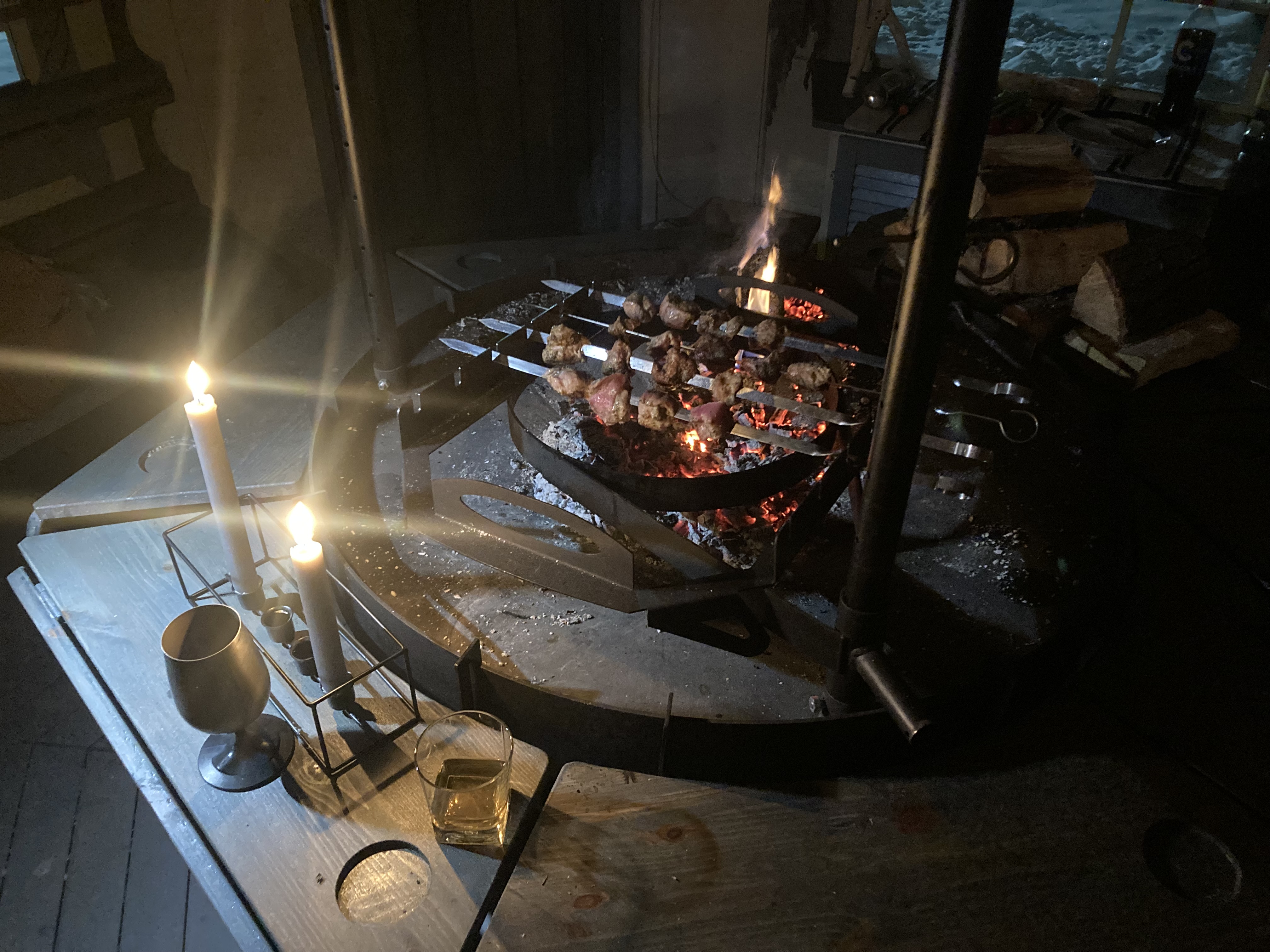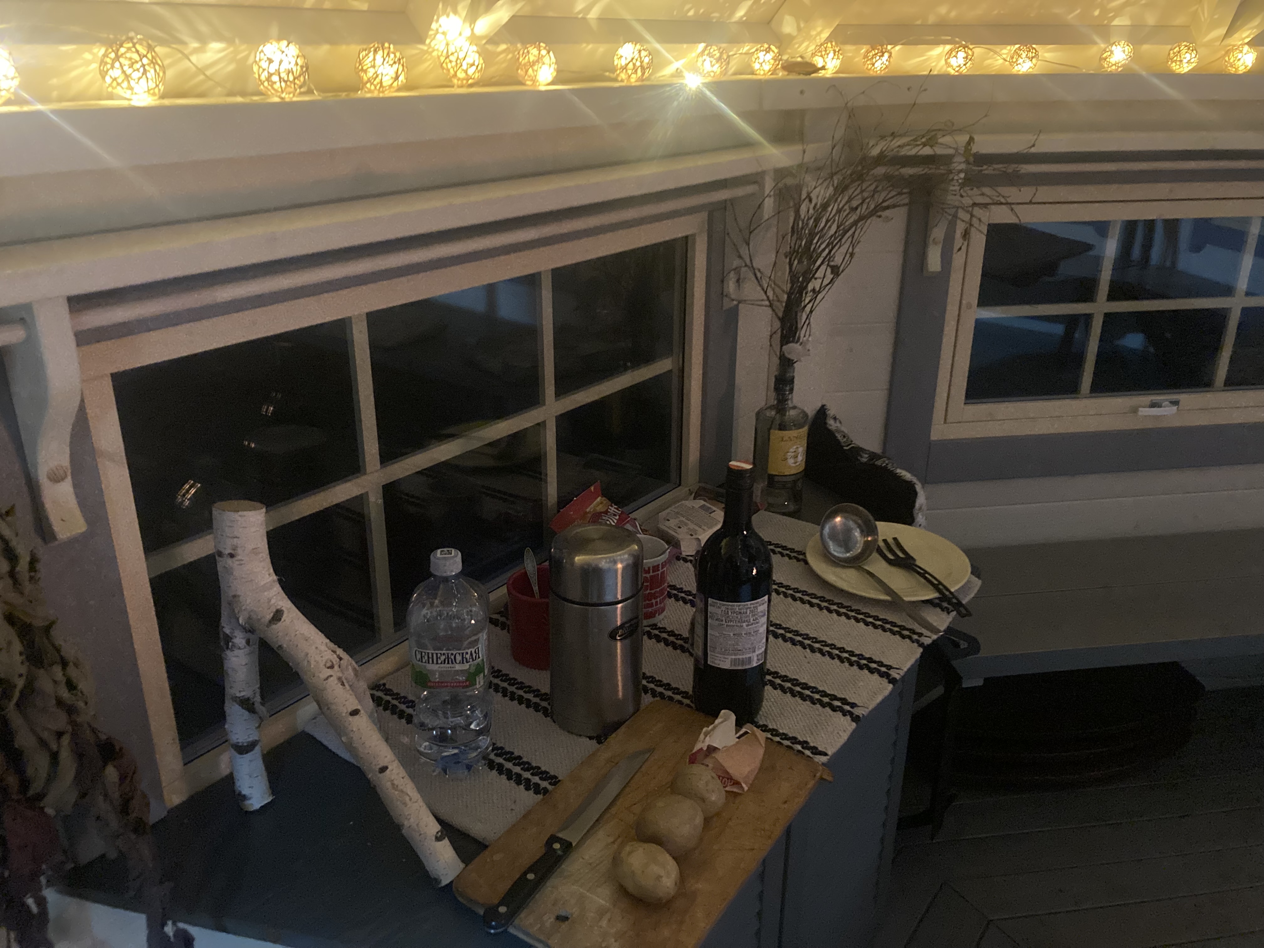 Пробный пуск прошел нормально. Есть плюсы и минусы, которые в процессе будут дорабатываться. Главное - это уютно и лампово, можно поставить чайничек или кофеварку, сидеть за ноутбуком работать или читать книжку. Я бы даже сказал, что тут тепло. Еще можно глинтвейн варить!