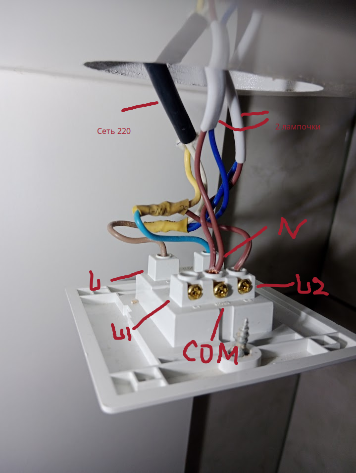 Помогите понять правильно или нет подключено. Это розетка+выключатель для двух светильников на полке в ванной. То, что есть - работает, но отключив питание через автомат индикаторная отвёрка светится на L2, при выключении общего автомата - не светится, вероятно наводки есть, хочу понять.
