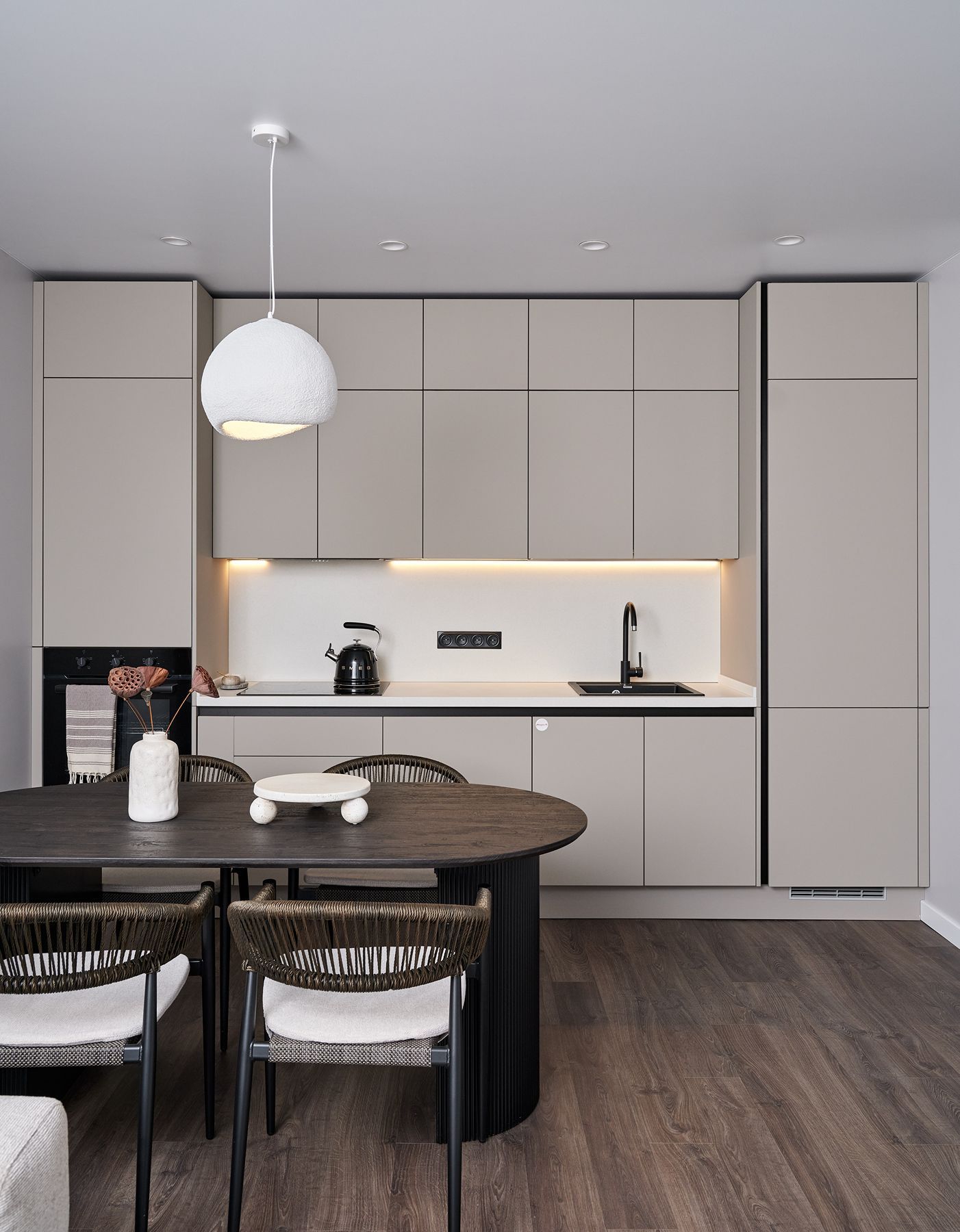 Мне нравится обычная скандинавская кухня, практичный пластиковый матовый фасад, целиком заплавленный в пластик. Это самая базовая стандартная кухня, дешевле только убогая клееная икеевская плёнка с облупленными углами.
