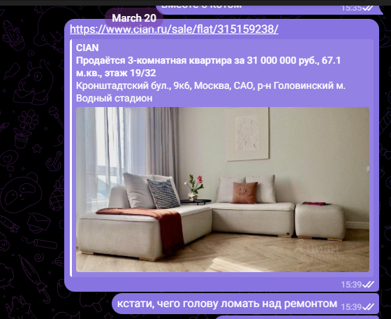 Обсуждаем: - Районы Москвы и Московской области. - Что насчёт качества домов, построенных в 90-е и 00-е при Лужке? - Что взять за 5-6 млн? Студию в Говорово или студию в Подмосковье на диаметрах? - Продолжаю солить бабки на вкладе. Каждый месяц докладываю 200к... Тяжело... - Как купить однушку внутри ТТК за 12 миллионов и наслаждаться чашечкой кофе и видами на Сити? - Какая ветка метро лучше: фиолетовая или жёлтая, и на каком направлении МЦД катается быдло? - Что лучше: вторичка или первичка, где проще поставить машину, меньше быдла и лучше пахнет, студия площадью 13 квадратов внутри МКАДа, или хоромы в 30 квадратов на конечной МЦД? - И все, что связано с выбором и покупкой квартиры.