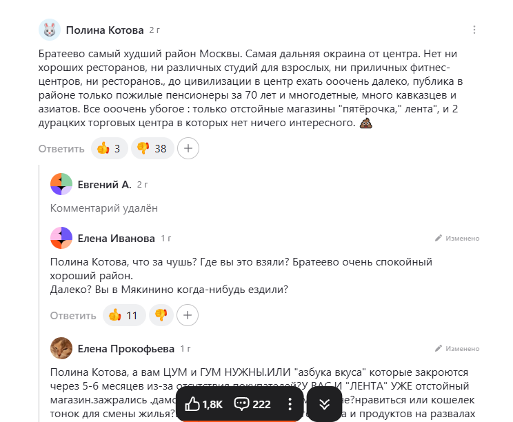 Чел получил бесплатные деньги по семейке, нехуй завидовать. Агрессия инцелов просто не имеет границ. Единственное, что возможно было бы лучше купить Движение Говорово. Тоже ебеня, но сейчас 200к за метр с отделкой стоит, справедливая цена для этой жопы.