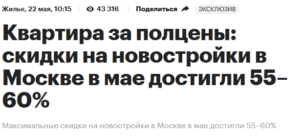 Выходит, что все те люди, которые имели 10-15 млн наличными или семейную ипотеку, но тянули, скоро мало что купят. По крайней мере с отделкой и по нормальной цене.