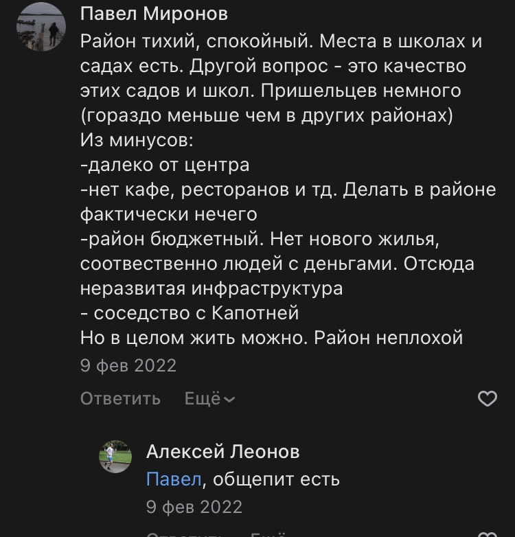 >>364836 Глянул район - ну и пиздец. До метро не дойти, рядом его вообще нет. Да еще и ценник для такого места загнули просто пиздец, кто там вообще купит, когда есть нормальные районы за этот прайс без НПЗ под боком?