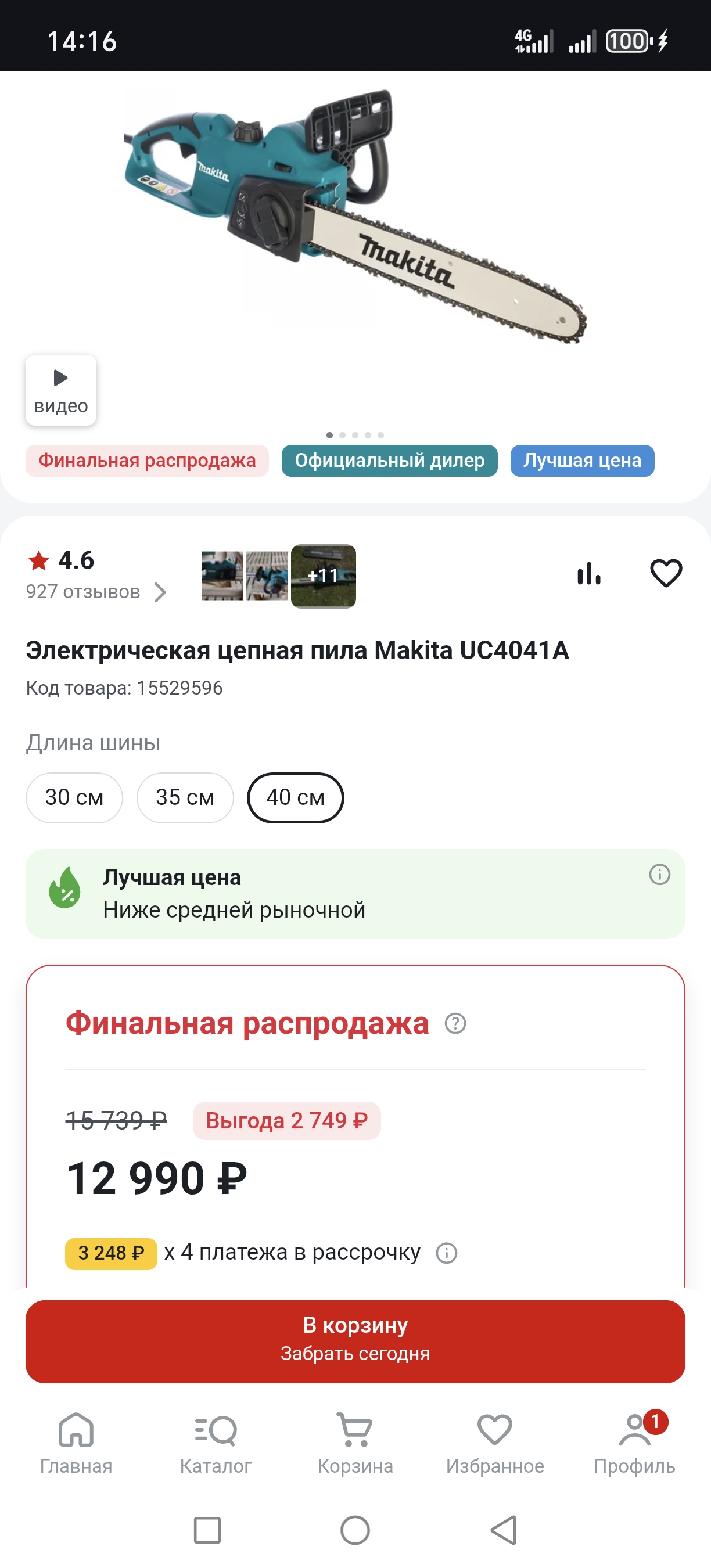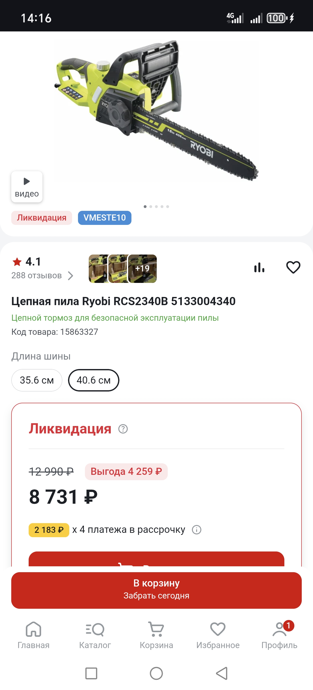 Выбрал "Makita UC4041A", заказал, оплатил. Мне перезвонил менеджер, предложил "Ryobi RCS2340B". Она конечно дешевле на 4 тысячи, но я и за 13 могу себе позволить, мне важнее качество и надёжность. Стоит рассмотреть Ryobi? Или он просто выпаривает из каких-то своих личных побуждений?
