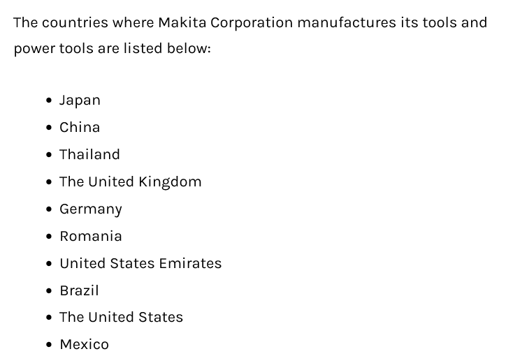 >>373911 Потому что барин из Макиты решил делать Макиту в Китае, так как это экономически выгоднее, японец будет делать долго и дорого и не факт, что лучше, а китаец быстро и дёшево и е факт, что хуже, а потом за оверпрайс можно продать продукт пастве фанатов, прямо как айфон, вкладываешь рубль, получаешь тысячу.