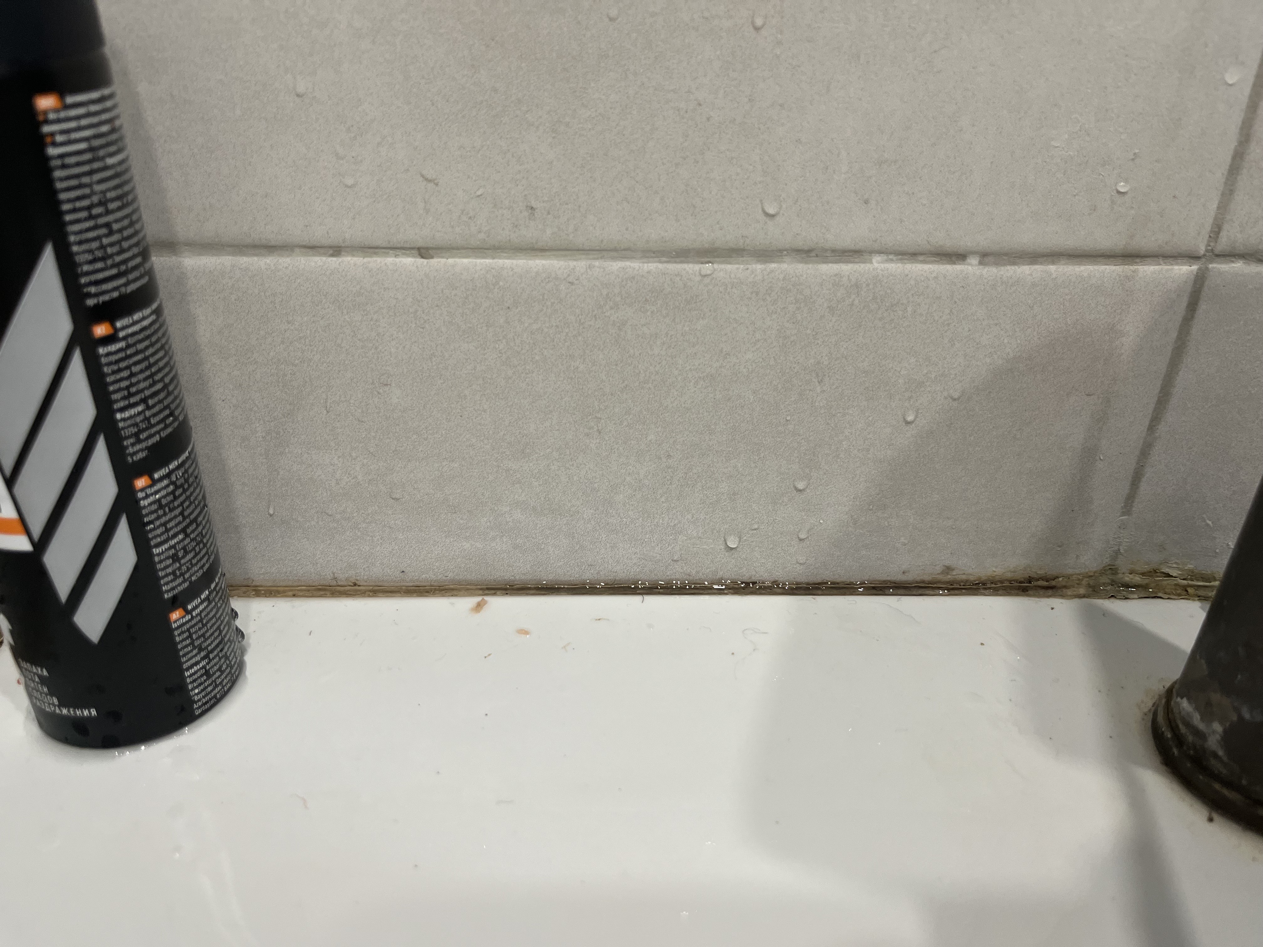 Заметил у себя, плесень начинает жить в первую очередь в высохщих мыльных остатках, как это на странно, мыло попадает на плитку, высыхает, через какое то время чернеет.