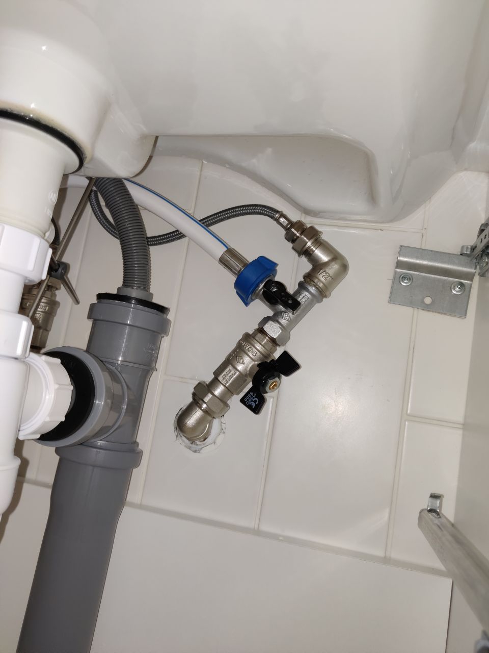 >>375253 Забыл написать, что коллектора нет — отделка от застроя, разводка водоснабжения последовательная, "гирляндой". Пикрелейтед — я делал подключение стиралки, нового донного клапана и смесителя. До этого смеситель чисто в водорозетки в стене подключался. Краны повёрнуты на бок, потому что иначе упираются в выдвижной ящик подвесной тумбы под умывальником.
