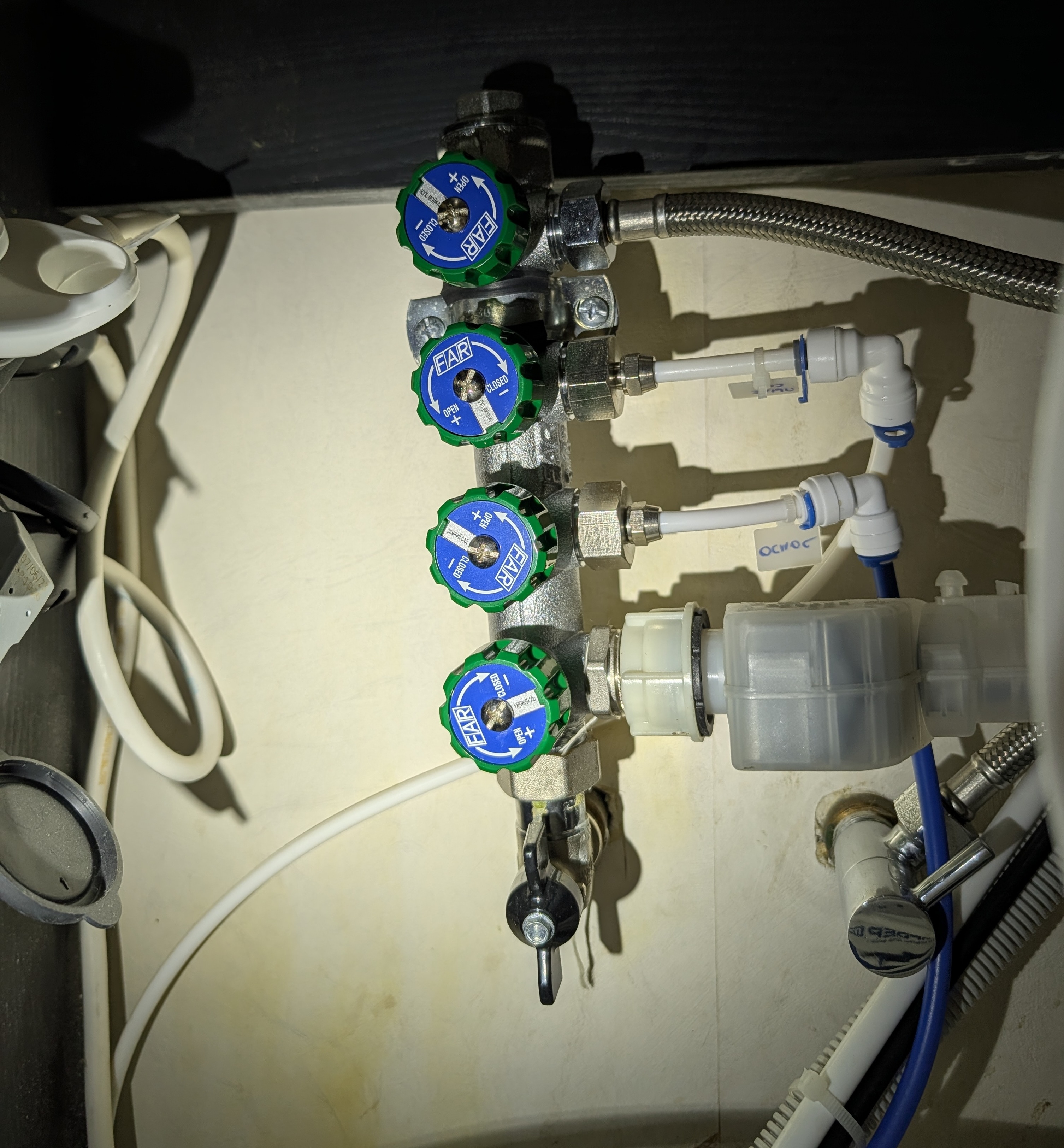 Это не совсем имеет отношение к твоему вопросу, но обязательно сделай : 1. чтобы поток воды можно было регулировать кран-буксой (например, как у тебя на пикриле на FAR'-овском коллекторе) 2. Поставь компенсатор гидроударов (у FAR есть на резьбу 1/2 дюйма) на ХВС