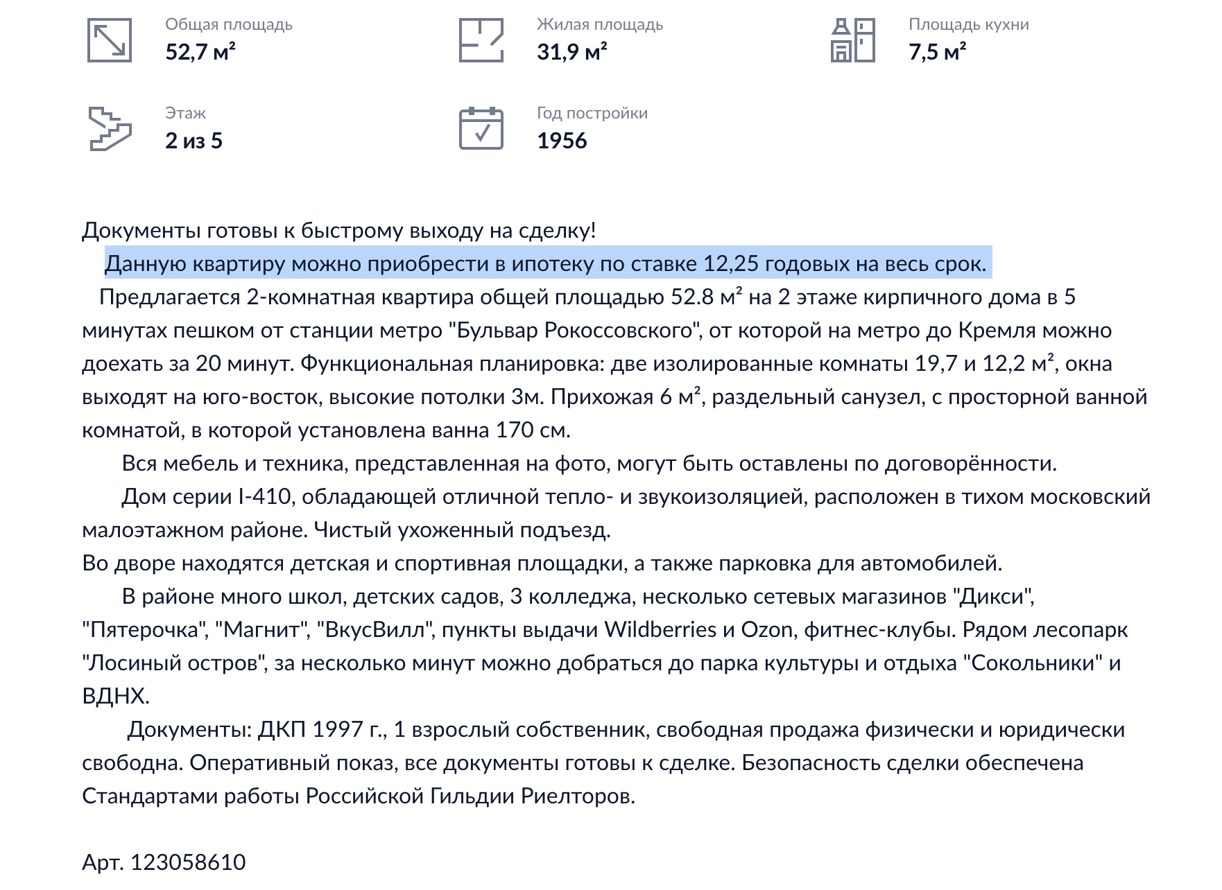 двач в чем подвох таких обьяв? вот пишут что ипотека 12% при этом право собственности 97 год. тоесть это явно не переуступка там кредита банка когда еще ставка нормальная была. Как такое делают?