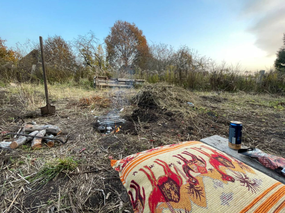 На этот сезон у меня осталась только одна задача - каким-нибудь хуем засейвить яблоню от предстоящих невзгод, хотя это можно было бы сделать и осенью. Но какое-то жевело в заднице сегодня меня подстегнуло выйти за порог и прокатиться до дачи. Конечно, я ничего не успел сделать, только попилить ветки под костёр. Но в итоге я часов 8 просидел у кострища, сделав себе сиденье поверх удачно попавшегося металлического контейнера из сарая. Офигенный вайб. Не помню, когда я вообще последний раз сидел так у костра. За алкашку прошу не осуждать, всё с закуской и в рамках приличия. Для вкуса и атмосферы. Кратенько про шашлык, взял в Магните кило в пакете, сам замариновал с луком и солью за пару часов. Но результат слишком, я больше люблю пожевать какие-то твердые волокна и всё такое, а тут как вагю какое-то, прям тает во рту. Лан, всякие подробности завтра или на днях, пойду позалипаю на ютубчике (решил вопросик с интернетом).