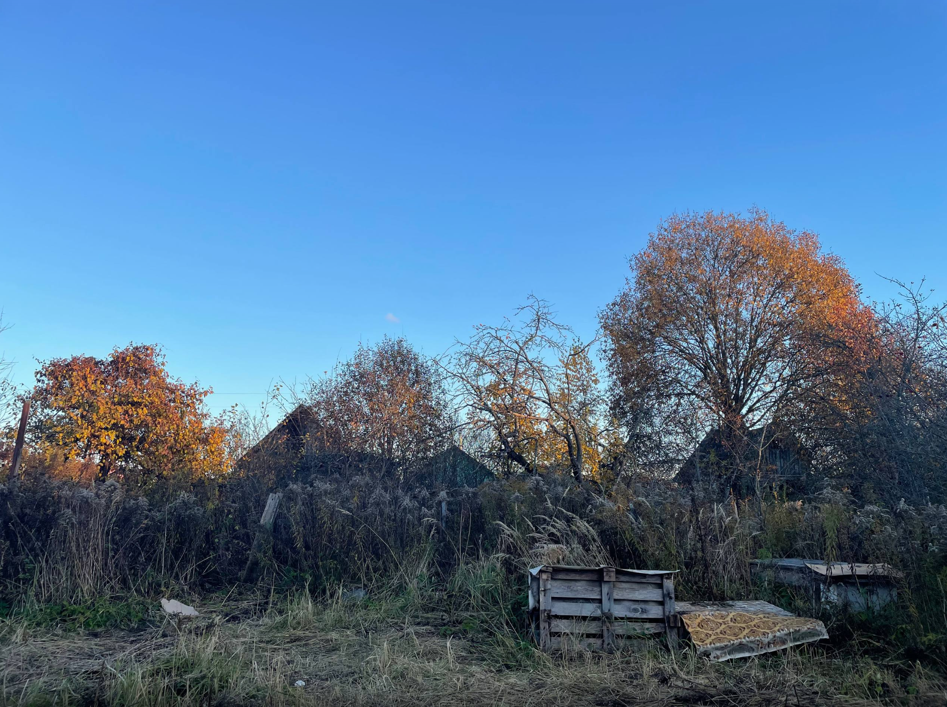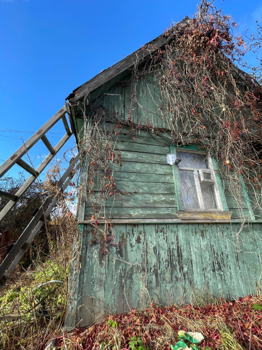 Плюсы: 1) Соседи через улицу живут постоянно, а на смежных участках владельцы были в преклонном возрасте и без наследников, дома стоят законсервированные уже больше 10 лет. Планирую устроить самозахват и дальнейшее межевание. 2) Чёткий сарайчик. 3) Осталась одна целая хорошая яблоня, висят яблочки. 4) Фундамент из бетонных блоков. 5) Облицовка из реек почти не пострадала. 6) Новый счётчик и пробки (но старые провода и розетки из 90-х).