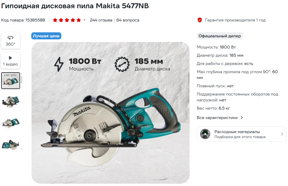 В целом, как "тяжелая артиллерия" при наличии другого инструмента - более мелкой и легкой пилки (+ само собой ручная ножовка т.к. глубины пропила не для всего хватает), то все равно машинка хорошая. Но как единственный вариант и если максимальный проект это какое-то неспешное сараестроение и гирю таскать лениво и если смотреть только на макиту, то в сравнении с гипоидкой например Makita HS6601 ИМХО получше выглядит: глубина под 90градусов тоже больше 50мм (в прочих редких случаях ножовкой дорезать), масса 3.7 против 6.5. Как бонус параллельный упор в комплекте и выход на пылесос. И стоит вдвое дешевле. А китайские конкуренты еще в два а то и в три раза дешевле даже этого Как-то так.