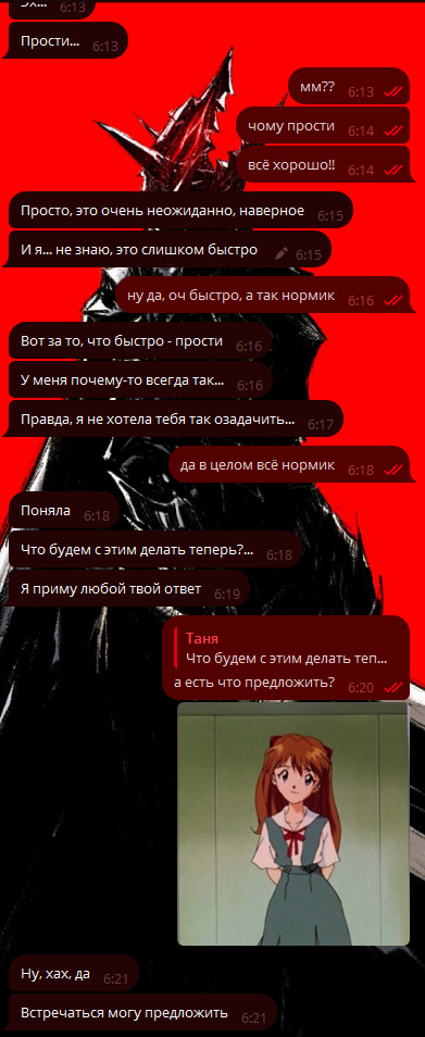 >>837578 Бро, то что очень быстро начинается, скорей всего также быстро и разрушится. Покумекай над данной информацией, иначе есть риск попасть в ту самую долгую любовь на всю жизнь длинною в 2 недели максимум