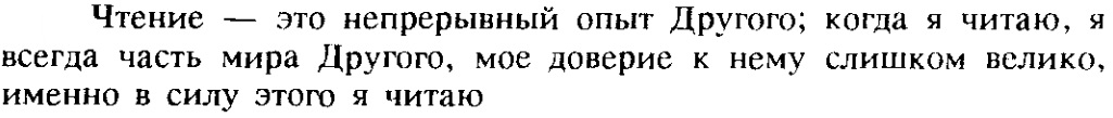 Теперь лучше понимаю сам себя: отсюда склонность к набору большого объёма в ответах и размышлениях - то же самое было у Пруста, когда он постоянно вставлял в предложения дополнительные данные (в скобочках) - он пытался растянуть время письма и тем самым продлить свой опыт тела.
