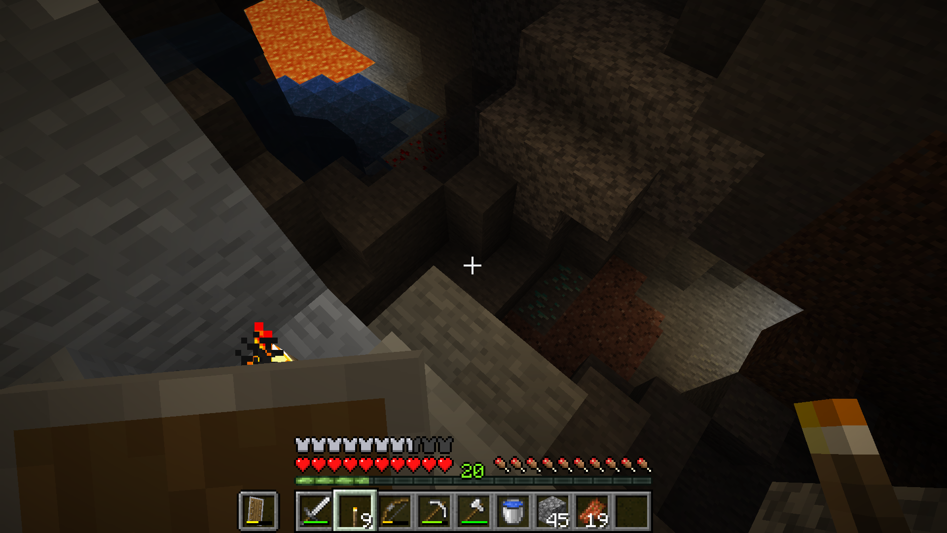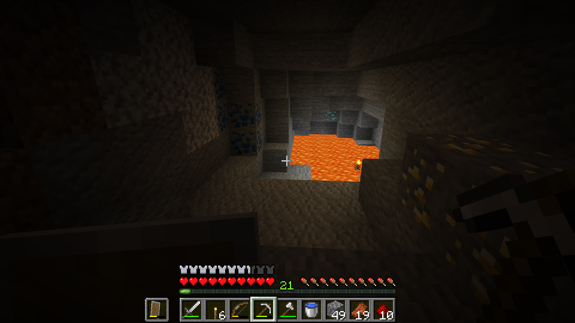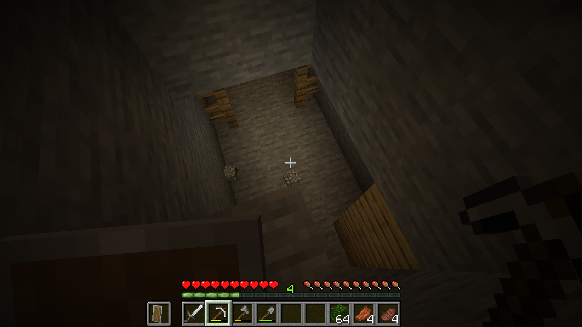 Нашёл расщелину. Почти закончилась еда, осталось только зомбячье мясо и пара кусков курицы, а я нашёл всего лишь один алмаз и железа не то чтобы очень много добыл. Если сейчас здесь не найду алмазов, то придётся выкапываться наружу.
