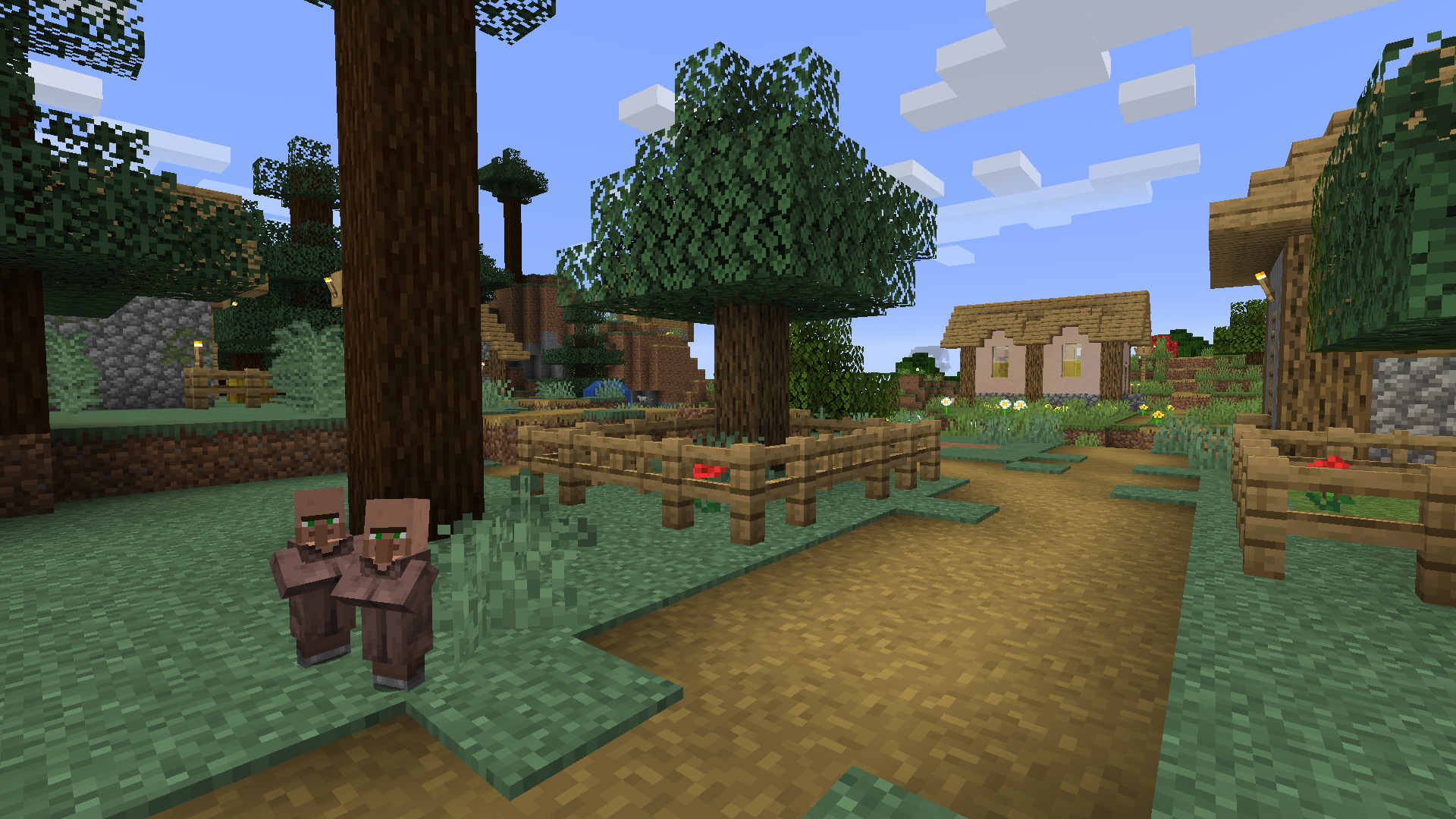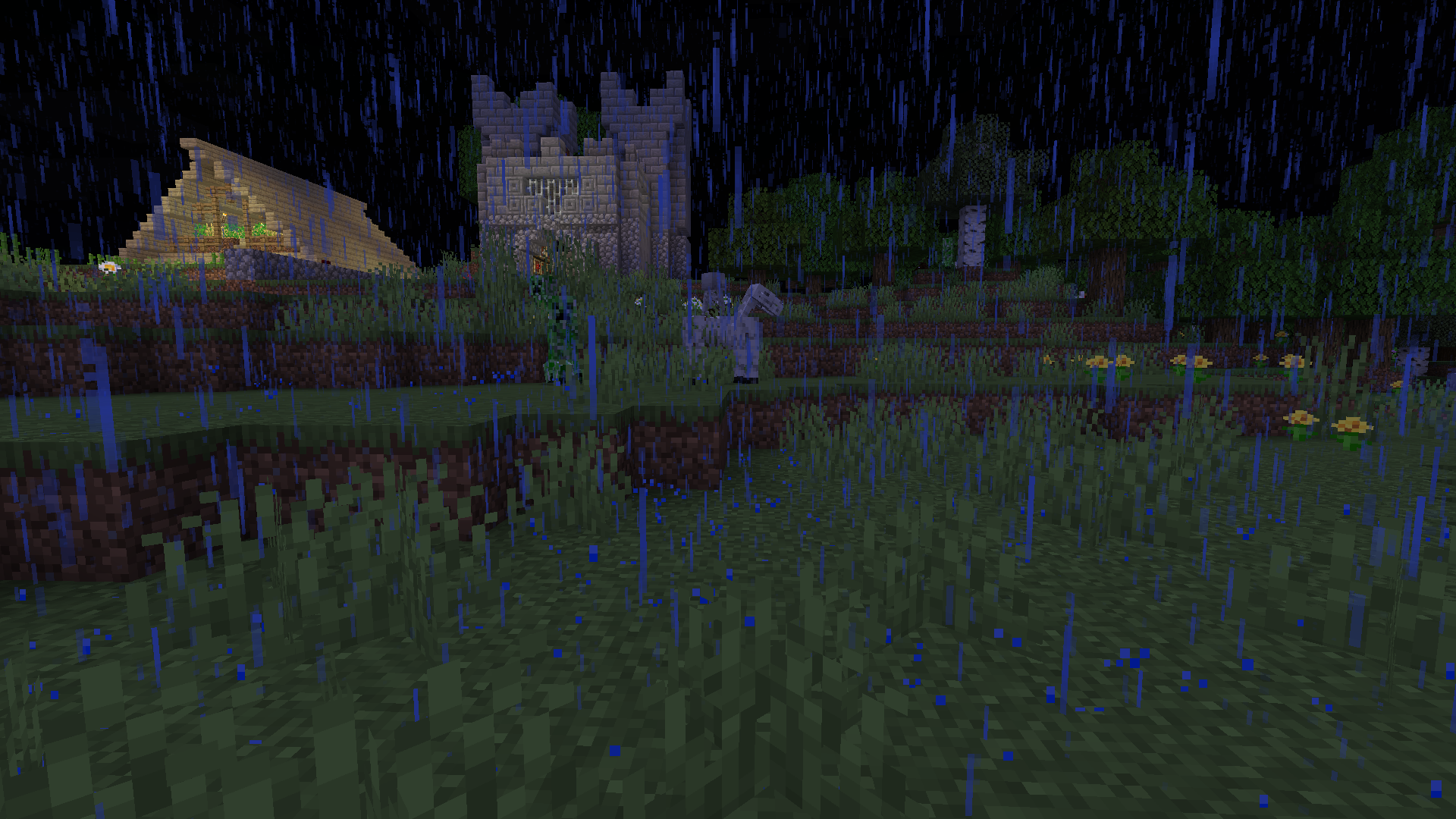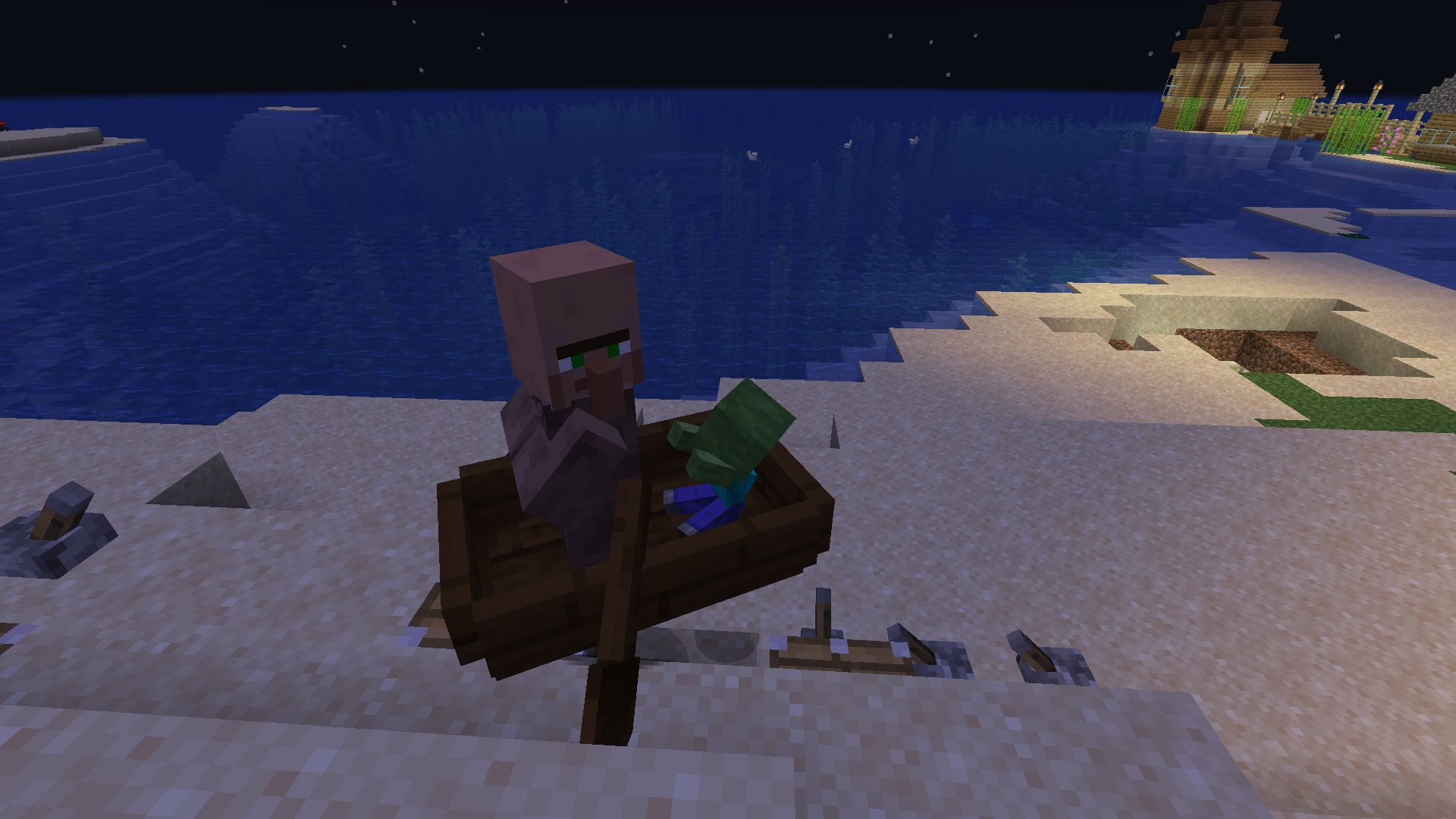 После этого далеко ушёл от дома, хотел найти что-нибудь интересное (ледяной биом, чтобы потом забрать оттуда лёд / пустыню, чтобы фармить эндер глаза / джунгли для бамбука etc), нашёл только деревню и записал её координаты, чтобы потом вернуться и утащить оттуда жителей. Но потом меня взорвал крипер и я потерял все айтемы, в том числе картофель и морковь, которые я так долго искал, и ещё саплинги жирных тёмных деревьев и сколько-то кожи.