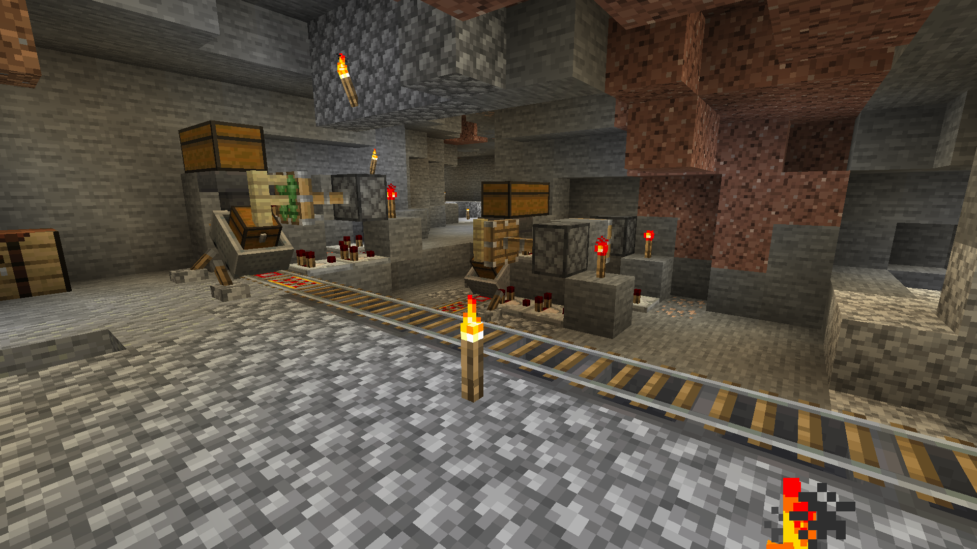 Всё же сделал ту ферму тыкв (вариант с вагонеткой с хоппером и одновременным срабатыванием всех пистонов). Вроде как работает, но довольно медленно (за минут 20 сгенерировала только 25 тыкв) и апдейтится она только, когда ты находишься относительно недалеко. (Ну, конечно, можно афк постоять и набрать побольше, но как-то лень таким заниматься. Может, надо сделать несколько таких ферм, но это долго и муторно) И очень дорого получилось из-за того, что надо проложить рельсы по всей площади снизу, даже с учётом того, что часть рельс я украл из заброшенной шахты. Но пока что никак её не оформлял. Думаю, просто засуну в дефолтный домик, только сделаю его Т-образным.