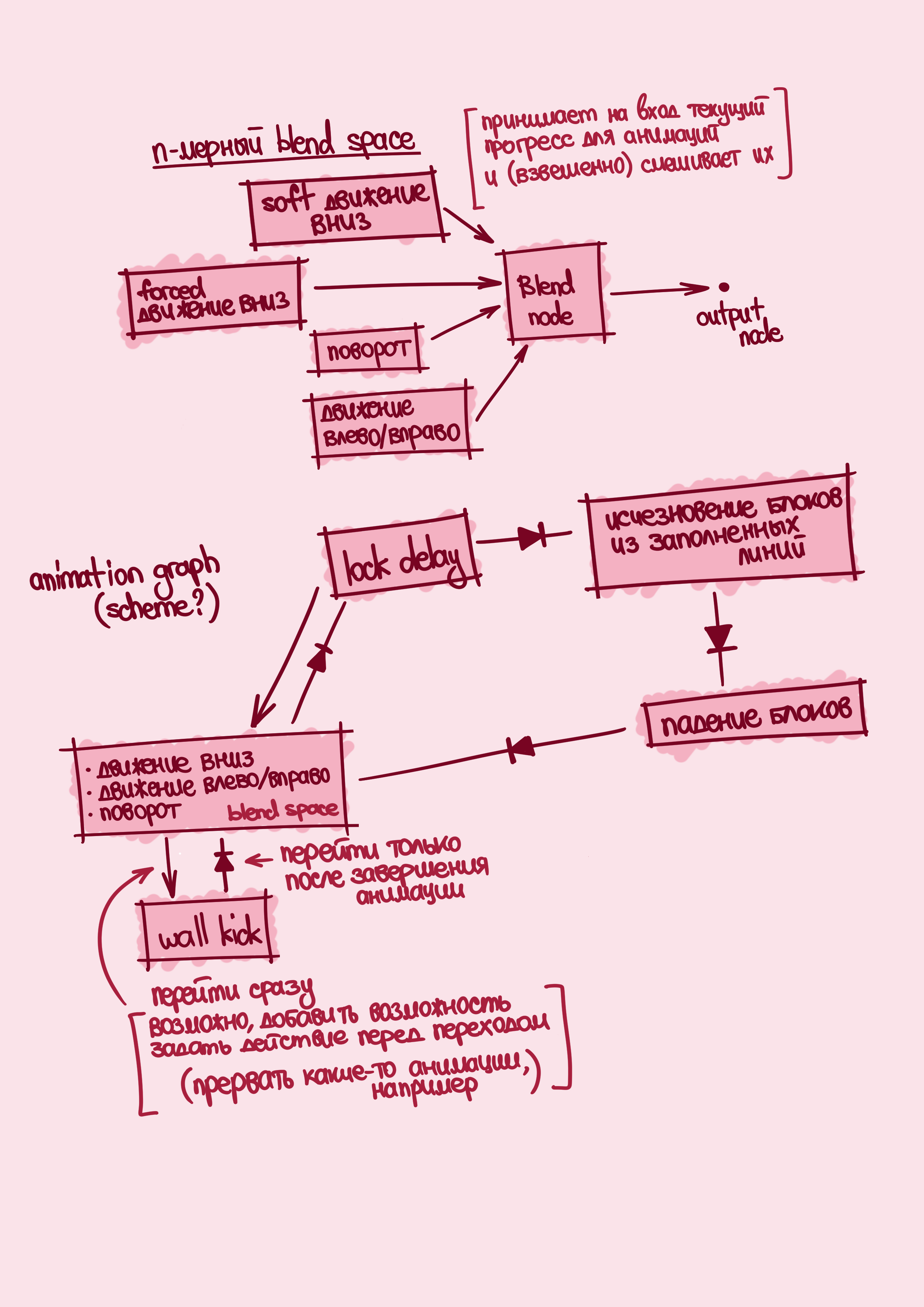 >>342599 Точно будет плавная анимация исчезновения полной линии и падения блоков над ней, для движения фигурки вниз, наверное, да, тоде будет анимация. Для вращения - не знаю точно, потому что волл кики будут выглядеть странно: во время анимации фигурка будет проворачиваться и задевать блоки, лежащие рядом, или вызлезать за пределы игрового поля. Может быть, можно сделать анимацию того, как будто фигурка вытаскивается из игрового поля (как будто двигается на тебя, в общем, просто зумится), проворачивается и одновременно перемещается линейно к месту, куда она встанет, а потом обратно уменьшается. Не знаю, насколько хорошо это будет выглядеть, в голове пока что выглядит нормально.