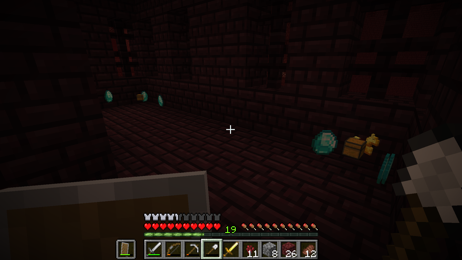 Так и не знаю, откуда брать левелы для зачарований. Есть вариант построить стандартную тёмную коробку в небе, из которой вниз будут падать спавнящиеся в ней мобы и почти убиваться, а я бы потом их добивал (если моб умирает сам, то опыт не дропается). И тогда можно было бы в том числе нафармить всяких предметов, но, мне кажется, я с этого мало получу опыта. Ещё можно бегать по аду (который у меня из-за пиратки неапдейтнутый и унылый) и собирать опыт с майнинга кварца, но это тоже как-то тяжеловато.