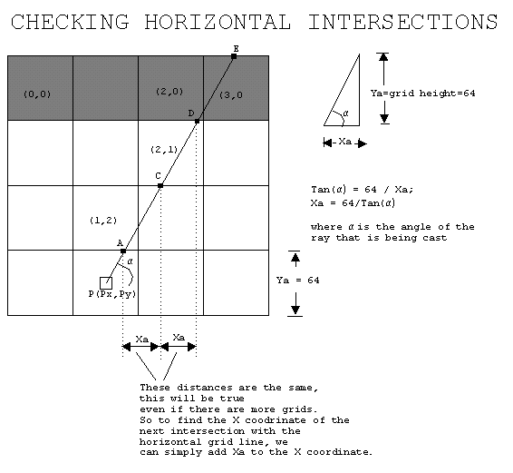 Теперь обе точки N и F пересечения можно определить как > t_nearMax = max(t_nearX, t_nearY) > N = (P(t_nearMax), P(t_nearMax)) > F = (min, min) Ну, то есть самая далёкая из ближайших и самая ближайшая из далёких. Также можно найти нормаль к ближайшей точке пересечения, написав что-то такое (ось ординат направлена вверх, ось абсцисс — направо): > if (t_nearX > t_nearY): > if ((Q − P).x < 0): > norm = (1, 0) > else: > norm = (−1, 0) > elif (t_nearX > t_nearY): > if ((Q − P).y < 0): > norm = (0, 1) > else: > norm = (0, −1) Первый if определяет, попал луч в левую/правую сторону или в верхнюю/нижнюю. Ну, а второй уточняет это по тому, куда был направлен луч. Если t_nearX = t_nearY, то это попадание прямо в угол. В таком случае можно, видимо, либо тупо выбрать что-то любое на первой развилке, либо пройти по обоим и сложить результаты, получив что-то вроде (1, −1), например? Во втором случае, мне кажется, так можно застрять внутри RectB. Может быть, можно сравнить составляющие вектора скорости и выбрать на основе того, какая больше? Не знаю.