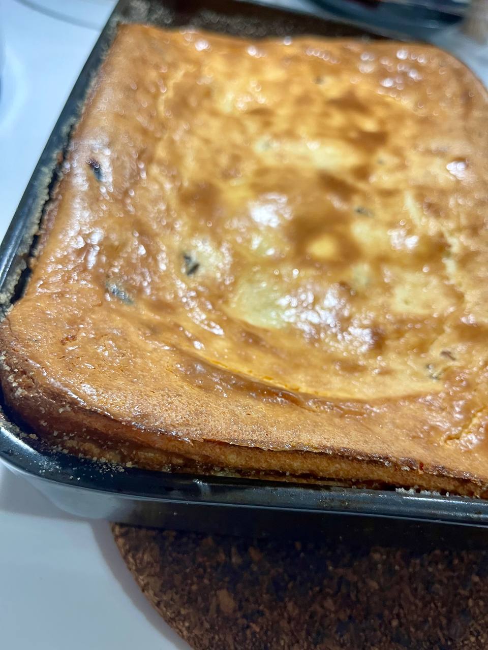 Достал форму (она горячая), влил тесто, сверху ± равномерно раскидал начинку (яблоко успело сок пустить) Ну и обратно в духовку на 40 минут, проверил зубочисткой - сухо, готово