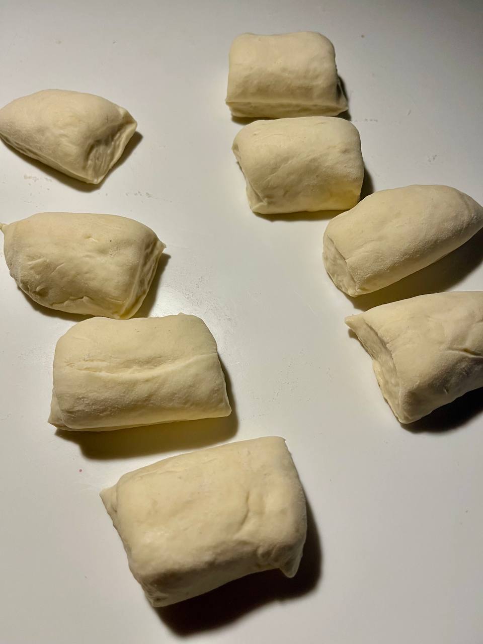 Замешал всё и оставил минут на 40. Пришёл, смазал руки водичкой и сделал 4 складки теста пополам, со всех четырёх сторон. Оставил на 30 минут. И так три раза. После чего делишь тесто на два, оставляешь на час взойти и уже из них делаешь пиццу.