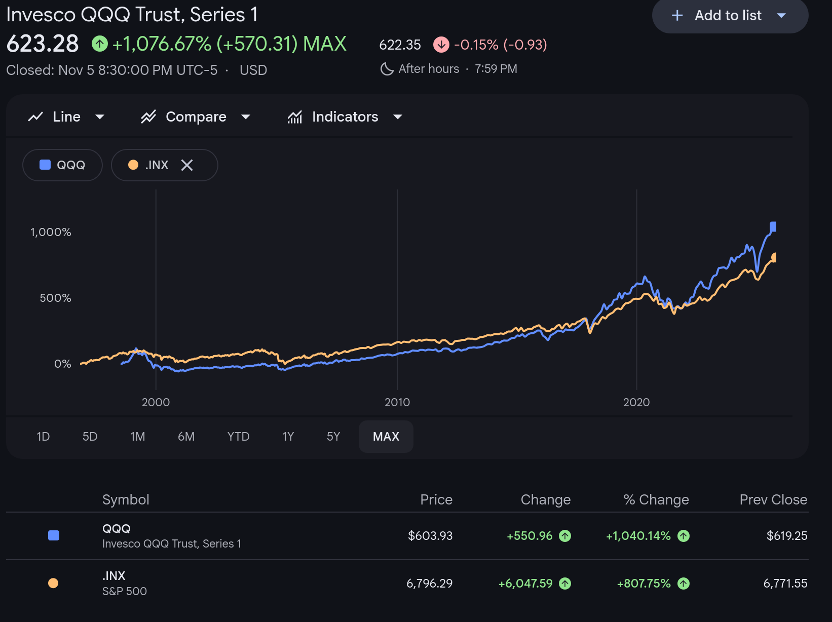 Здесь будет мой дневник про инвестиции. Недавно я посмотрел на свои счета, и понял что заработанное постепенно выгорает на сберкнижке. Что делать в этой ситуации? Конечно, инвестировать. Во всех гайдах про инвестиции говорят, мол, сначала определитесь с целями инвестиций. Я выбрал цель понятную и бесхитростную: иметь миллион долларов. Открыл брокерский счет, и исходя из этого, выбрал QQQ как первое приобретение. Это фонд, инвестирующий в хайтек компании - компьютеры, интернет. Один из самых популярных, существует 20 лет и хорошо растет. Компьютеры никуда не денутся и через 100 лет, так что это надежный вклад. Покупать я буду только на долгосрок (от года). Также у меня $14000 в крипте. Итого 2% от цели.
