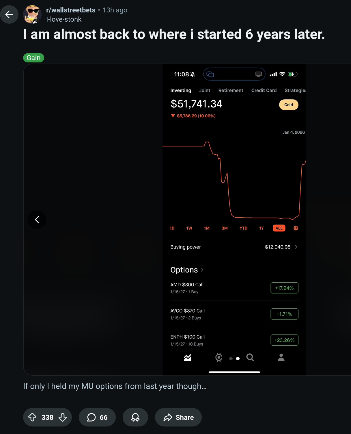 >>823003 Будет неприятно, конечно. У меня в акциях 21%, в крипте которая тоже рухнет скорее всего еще 7%, т.е. возьмем 28%. Если просядет вдвое, что вполне реально, потеряю 14%. Не смертельно, изводиться прям я не буду, но это примерно с год моих накоплений. Иногда я вижу в интернете как люди (утверждают что) ставят большие деньги на рандомные исходы, например нелепые опционы каких-то стоков. В r/wallstreetbets такое бывает. Мне честно говоря трудно понять это и поверить что это на самом деле. Даже будь у меня было 10 миллионов, никогда я бы не поставил на красное 500к, например. Рисковать большими деньгами я не люблю. Можно сказать что материальное ($$$) для меня довольно-таки важно. Дык я из нищуков изначально, так что какбэ не удивительно.