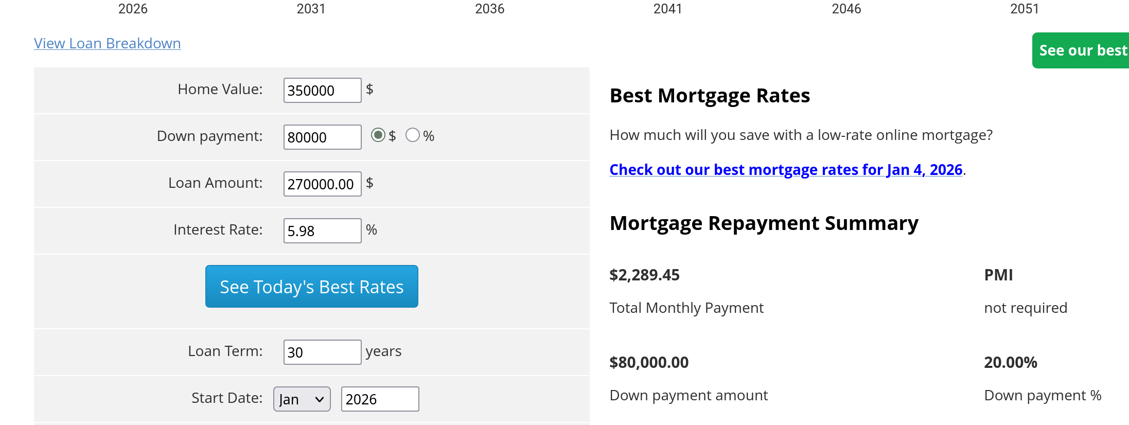 >>835028 Около 6% вроде, как в посте выше. Было и по 7%. Вот калькуляция по моему домику, в ипотеку мне бы пришлось платить $2300 в месяц, что примерно равно ренте. Но еще нужно делать ремонты, платить страховку, налоги, короче это будет глубокий минус. Если брать как свою основную резиденцию, то конечно это лучше чем снимать.