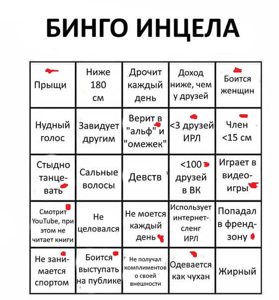 >>548371 Разумеется, что едва ли по этому списку требований проходит больше 5% мужского населения РФ, но... Ну а как ты хотел? Всё по чесноку. В этом и смысл, это как заповеди Христа. Пизданутый идеал, к которому подспудно стремится бОльшая часть мужчин в РФ. И отказаться от этого идеала они не могут, потому что, метафорически выражаясь, пацаны во дворе засмеют. Ссыкотно, поэтому придётся следовать этой хуйне и рвать жопу. Аналогично и со списком требований к женщине. Уверен в том, что бОльшая часть списка требований к женщине не важна большинству мужчин. Им просто похуй на то, по чему парятся бабы. Уверен и в том, что бОльшая часть списка требований к мужчине не важна большинству женщин, и им просто похуй на то, что мужчины считают важным. Тем не менее, всё это вонючее дерьмо в голове всегда будет существовать, потому что миф легче познания реальности, а это значит, что будет миф, а не реальность в голове. По моей гипотезе как раз вот эти норма и идеал существуют на практике только в фантазиях и в жизни 5% населения (цифра условная). Но никого ничего никогда не смутит, все просто будут дальше ебать себе голову, а потом ебать свой организм, чтобы достичь поеботины, которая по факту и не нужна, потому что в этом все люди. Их хлебом не корми, но дай пострадать в достижении ненужной хуиты, руководствуясь мифическим представлением о реальности. Избыток энергии и шило в жопе, в реальности всем на всё похуй, по большей части, поэтому выдумают себе проблемы, чтобы куда-то деть избыток сил, то есть придут в миф.
