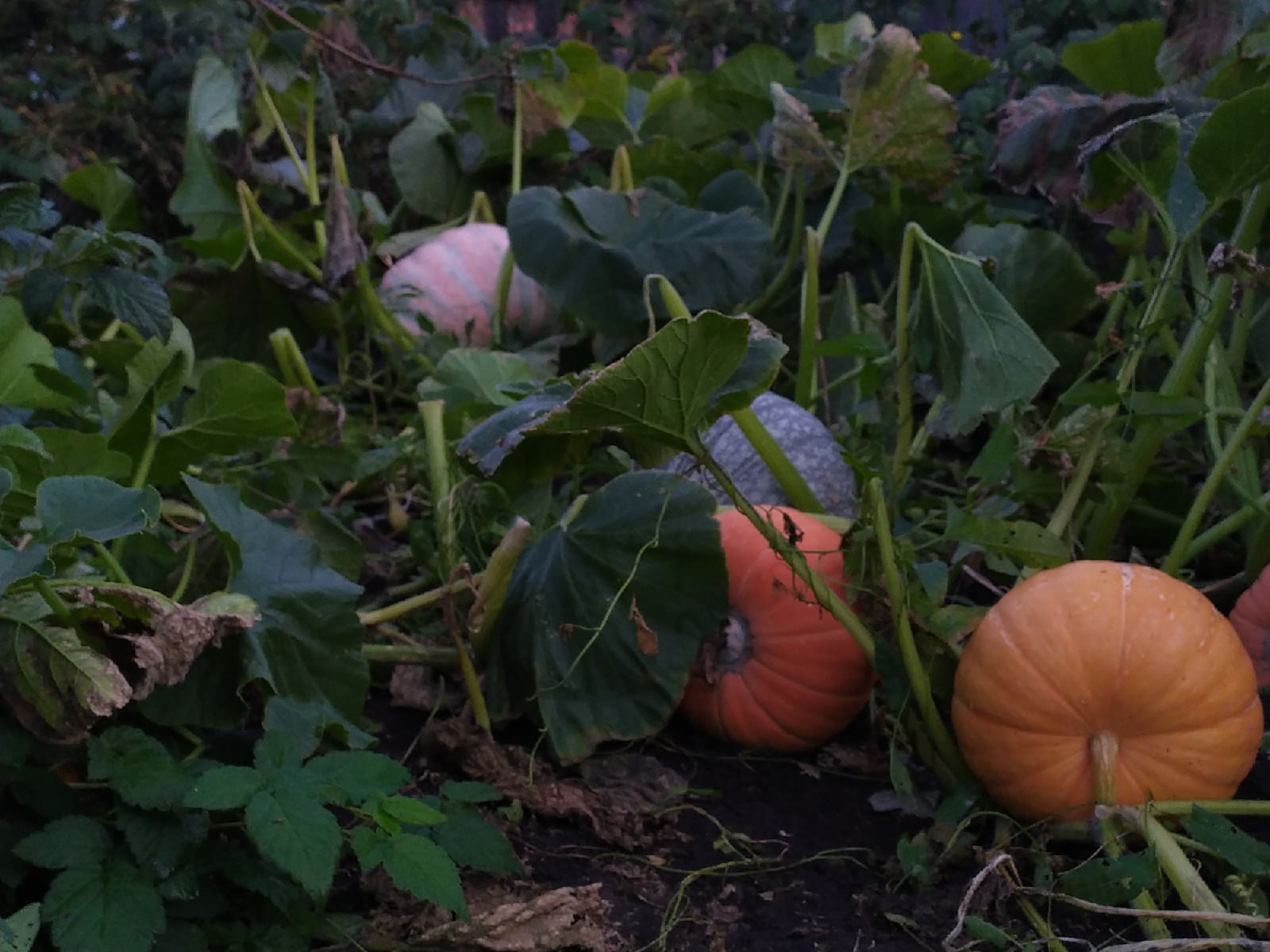 Собрал сегодня тыквы. В прошлом году мощный был урожай. Было весело собирать их сестрой, нагромождать тележку и переть все это домой. Там была одна громадна тыква, которая занимала собой всю тележку, ну знаешь, такие на выставки возят. Чувствовал себя тогда настоящим фермером. А в этом году так, всего пара тройка тыковак, которые можно пустить на еду, да ещё какие-то мрази стащили несколько. И собирал я их в одиночестве.
