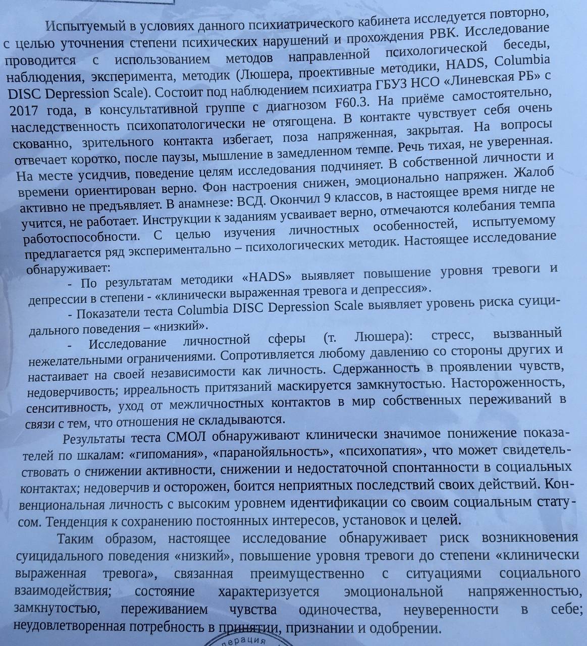 А, да, подготовка к мед экспертизе - это отдельная процедура, и в этом отделении ее не делают. Я почему то думал, что для составления документов хватит обычного обследования. У меня был выбор, лечь сюда, уточнить диагноз и попробовать подобрать лечение, либо ложиться в острое, чтобы там сразу составляли направление. Я уже настроился на отделение неврозов, и в острое совсем не хотелось. Так и не определился, стоило ли.