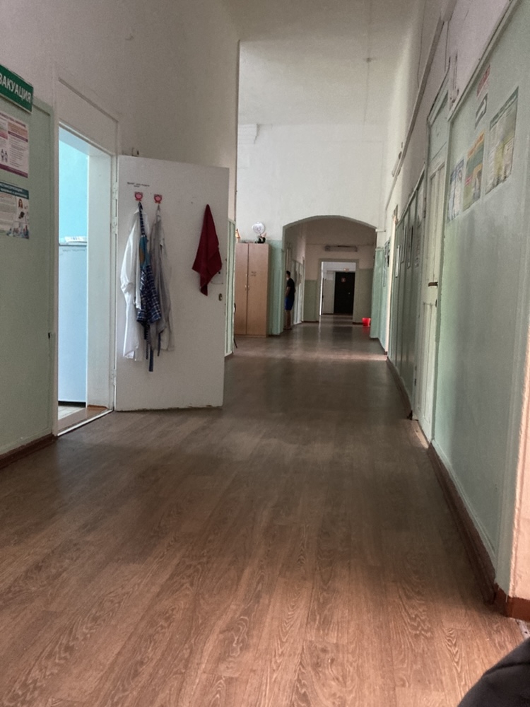 Из-за жары поднялась температура, сказали ложить меня в бокс для потенциально заразных. В нем уборка, говорят, иди сиди в углу, на стуле рядом с палатой. Сижу, скушно