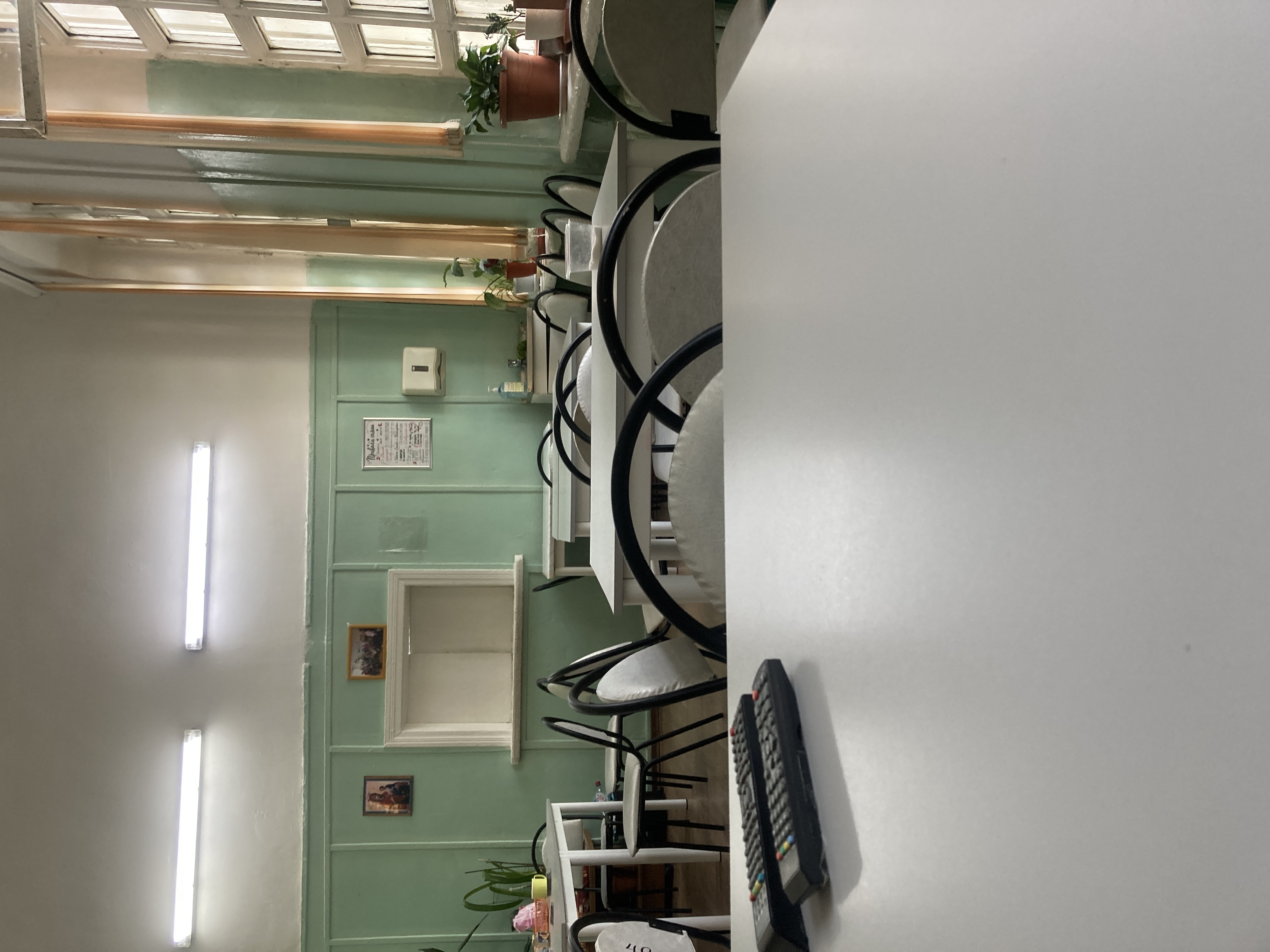 Палата нравится. Потолки высоченные, есть базовые удобства в виде тумбочек, стола, шкафа, ну а окно ты сам видишь. Для полного счастья не хватает туалета и разеток в самой палате, но это здание слишком старое для такого. Палаты, как понимаю, четырехместные, но я пока буду сидеть в одиночестве.